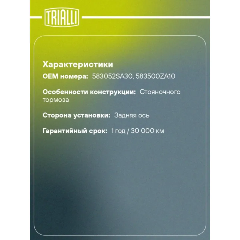 | Гарантийный срок | 1 год / 30 000 км |