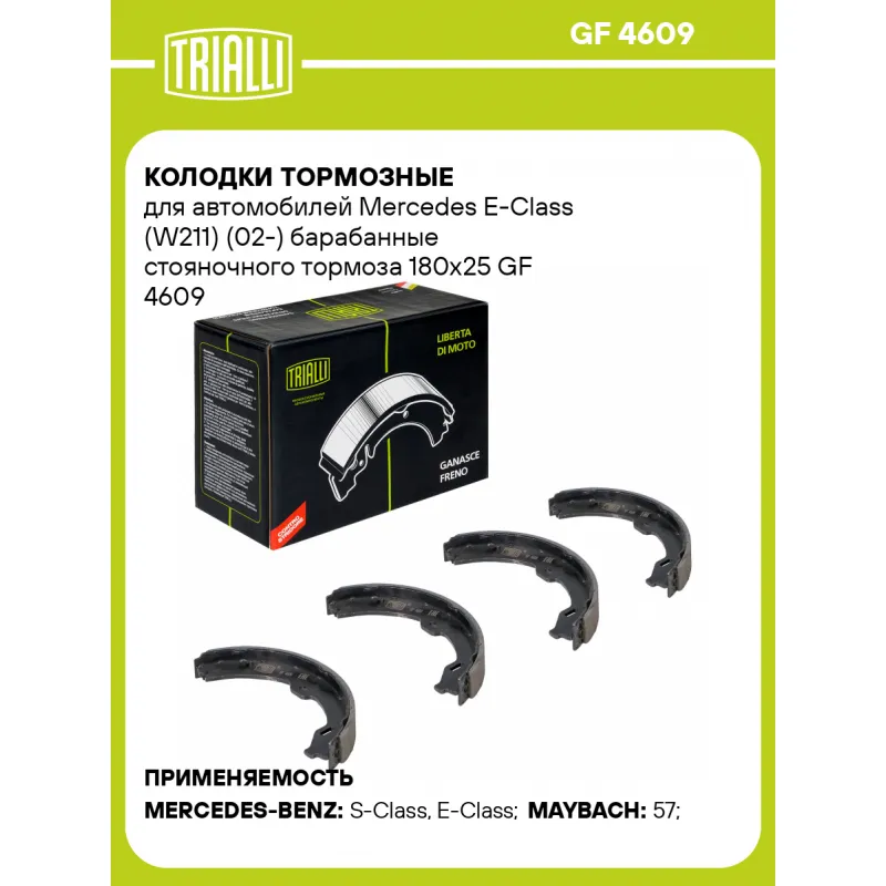 Колодки тормозные для автомобилей Mercedes E-Class (W211) (02-) барабанные стояночного тормоза 180x25 Характеристики: Артикул: GF 4609 OEM номера: 2404200020, 2404200120, 2304200312, 2304200320, A2204200620, A2304200312, A2304200320, A2404200020, A2404200120, 2214200120, 2204200620, 1974200120, 2404200012 Гарантийный срок: 1 год / 30 000 км Сторона установки: Задняя ось Количество на автомобиль: 1 Ширина, мм: 25 Диаметр, мм: 180 Товарная линейка: BLACK Комплектация: Колодка тормозная - 4 шт Гарантия: от 1 года.