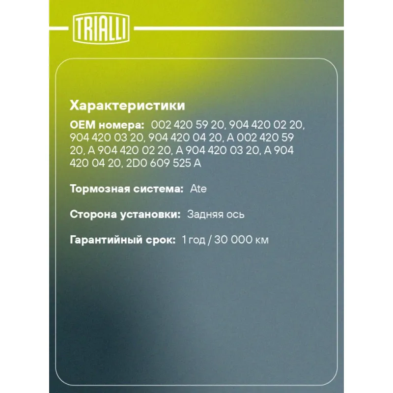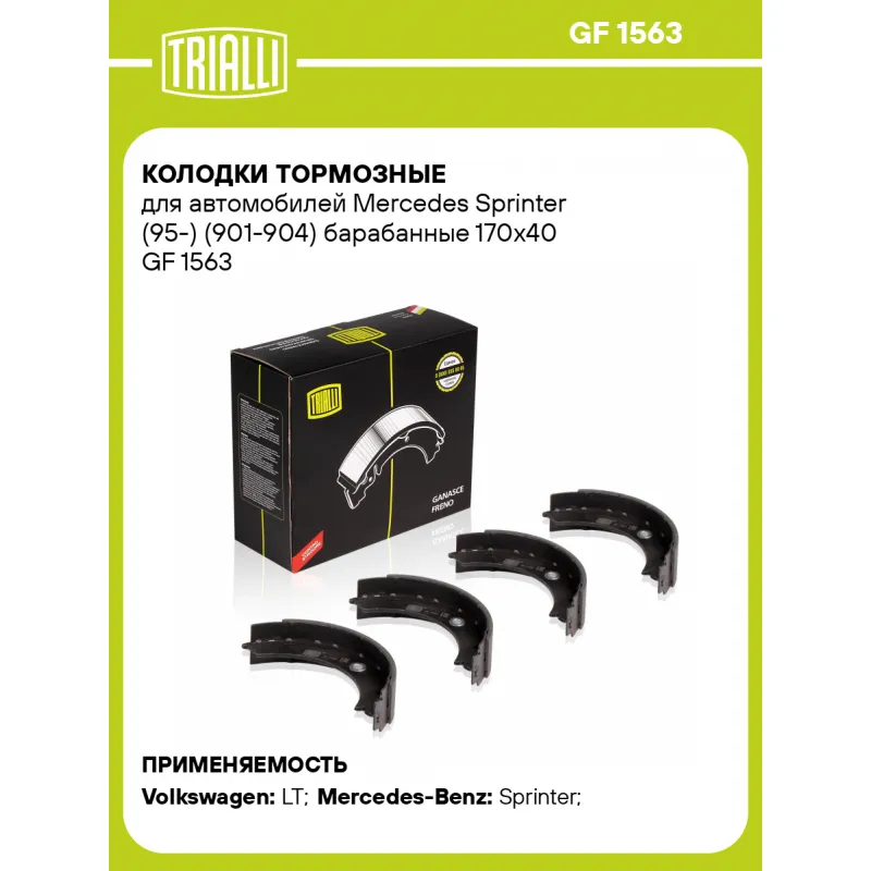 Колодки тормозные для автомобилей Mercedes Sprinter (95-) (901-904) барабанные 170х40 Характеристики: Артикул: GF 1563 OEM номера: 002 420 59 20, 904 420 02 20, 904 420 03 20, 904 420 04 20, A 002 420 59 20, A 904 420 02 20, A 904 420 03 20, A 904 420 04 20, 2D0 609 525 A, 2D0 609 538 A, 2D0 698 525 A Гарантийный срок: 1 год / 30 000 км Сторона установки: Задняя ось Количество на автомобиль: 1 Ширина, мм: 40 Диаметр, мм: 170 Тормозная система: Ate Товарная линейка: BLACK Подходит для авто: Volkswagen LT (96-) Mercedes-Benz Sprinter (95-) Для проверки применяемости отправьте VIN автомобиля через вкладку "Есть вопросы о товаре?" Комплектация: Колодка тормозная - 4 шт Гарантия: от 1 года.
