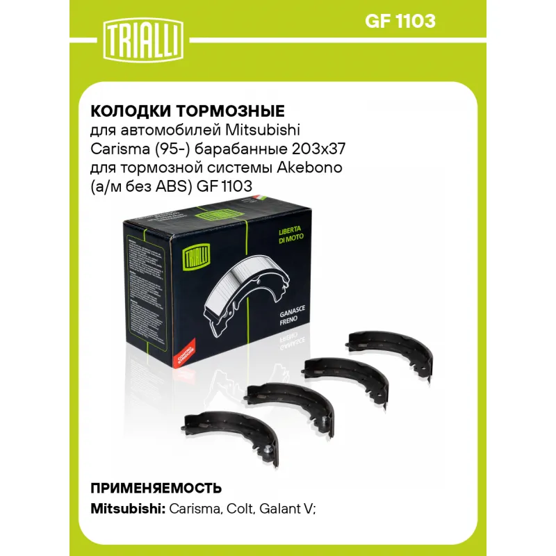 Колодки тормозные для автомобилей Mitsubishi Carisma (95-) барабанные 203x37 для тормозной системы Akebono (а/м без ABS) Характеристики: Артикул: GF 1103 OEM номера: MB618190, MB699335, MB950064, MN102633, MB699334, MB699336, MZ981192, MR344164, MR334025, MR334024, MR334023, MB668335, MB618191, MB618189, MB587174, MB366169, MB134832 Гарантийный срок: 1 год / 30 000 км Сторона установки: Задняя ось Количество на автомобиль: 1 Сопутствующие товары:: CF 0152 Ширина, мм: 37 Диаметр, мм: 203 Тормозная система: Akebono Товарная линейка: BLACK Подходит для авто: Mitsubishi Carisma (95-), Colt (92-), Galant V (92-), Lancer (96-), Carisma (95-), Colt (96-), Lancer (96-) Для проверки применяемости отправьте VIN автомобиля через вкладку "Есть вопросы о товаре?" Комплектация: Колодка тормозная - 4 шт Гарантия: от 1 года.