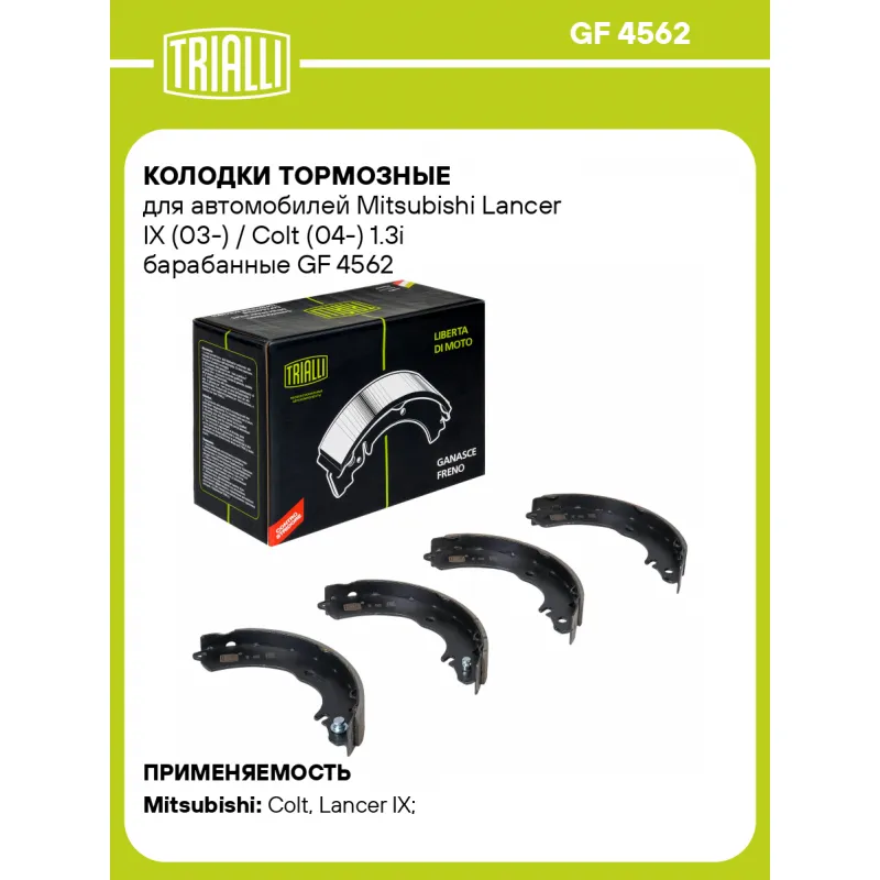 Колодки тормозные для автомобилей Mitsubishi Lancer IX (03-) / Colt (04-) 1.3i барабанные Характеристики: Артикул: GF 4562 OEM номера: 4800A089, MR449086, MR449087, MR449088, MR485499, MR586855, 720060023, MR569374, MR569372, MR569373, MN116758, MN116757, MN116756, 4800A091, 4800A008, 440606A0A7, 440606A0A3, 440606A01E, 440606A00J Гарантийный срок: 1 год / 30 000 км Сторона установки: Задняя ось Количество на автомобиль: 1 Ширина, мм: 32 Диаметр, мм: 203 Товарная линейка: BLACK Подходит для авто: Mitsubishi Colt (04-), Lancer IX (00-) Для проверки применяемости отправьте VIN автомобиля через вкладку "Есть вопросы о товаре?" Комплектация: Колодка тормозная - 4 шт Гарантия: от 1 года.