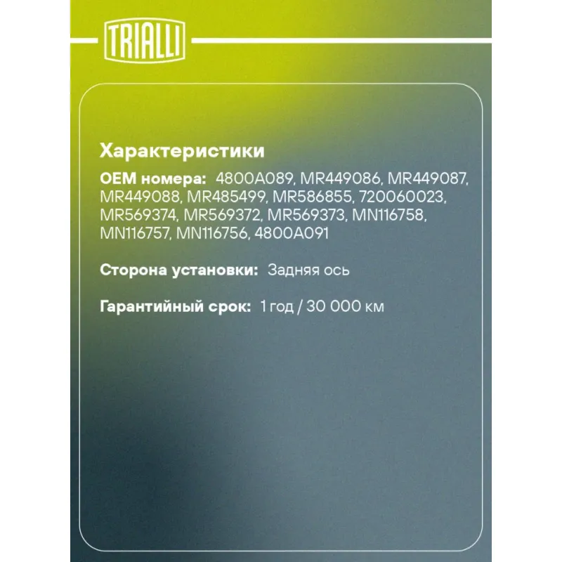 | Гарантийный срок | 1 год / 30 000 км |