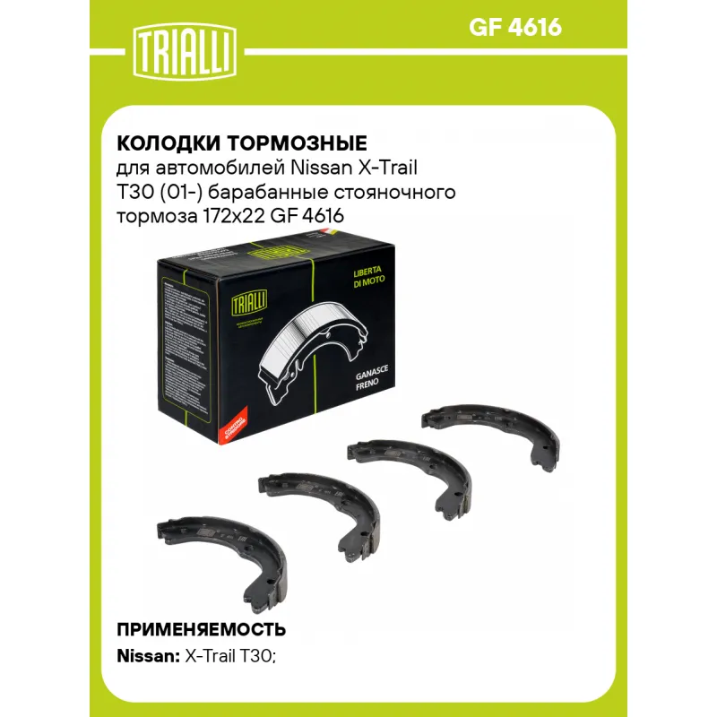 Колодки тормозные для автомобилей Nissan X-Trail T30 (01-) барабанные стояночного тормоза 172x22 Характеристики: Артикул: GF 4616 OEM номера: 440608H725, D4060-8H725 Гарантийный срок: 1 год / 30 000 км Сторона установки: Задняя ось Количество на автомобиль: 1 Ширина, мм: 22 Диаметр, мм: 172 Товарная линейка: BLACK Подходит для авто: Nissan X-Trail T30 (01-), X-Trail T30 (01-) Для проверки применяемости отправьте VIN автомобиля через вкладку "Есть вопросы о товаре?" Комплектация: Колодка тормозная - 4 шт Гарантия: от 1 года.