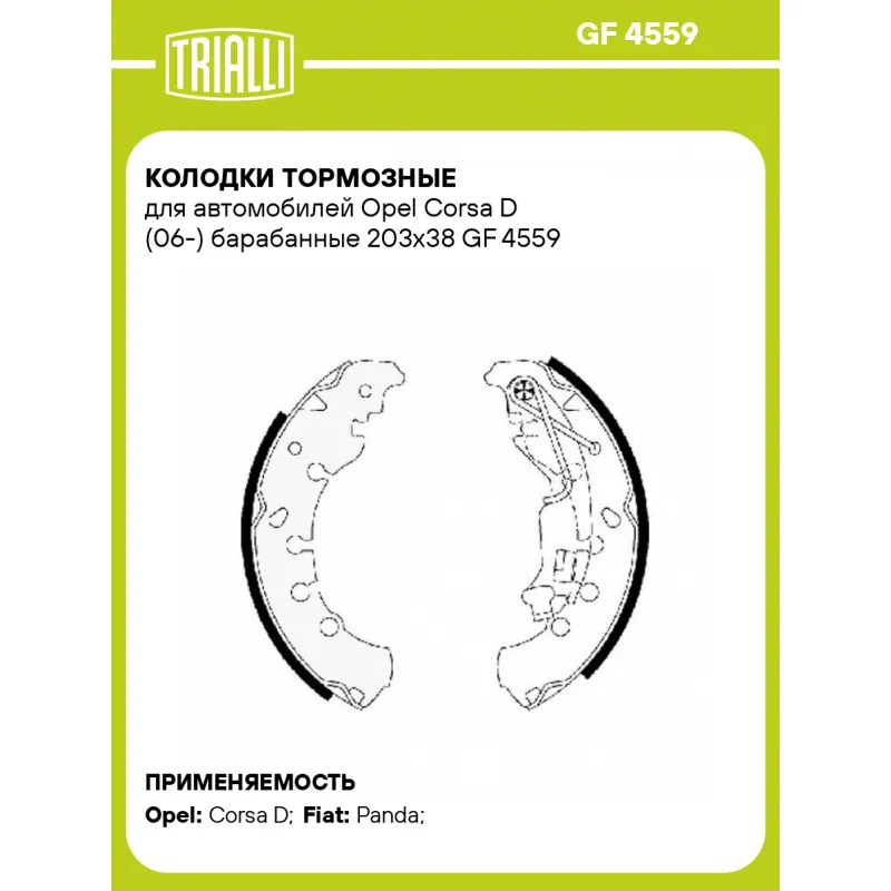 Колодки тормозные для автомобилей Opel Corsa D (06-) барабанные 203x38 Характеристики: Артикул: GF 4559 OEM номера: 4141P3, 4241N7, 4251P3, 4241P0, 4241P3, 95517922, 93189993, 93168956, 77366054, 77363855, 77362929, 77362449, 1605458, 1605289, 1605107, 77364817, 77364744, 77364029 Гарантийный срок: 1 год / 30 000 км Сторона установки: Задняя ось Количество на автомобиль: 1 Ширина, мм: 38 Особенности конструкции:: С рычагом стояночного тормоза Диаметр, мм: 203 Тормозная система: AP Lockheed Сопутствующий товар: Барабаны тормозные: TF 224579 Товарная линейка: BLACK Подходит для авто: Opel Corsa D (06-) Fiat Panda (07-), Panda (12-) Для проверки применяемости отправьте VIN автомобиля через вкладку "Есть вопросы о товаре?" Комплектация: Колодка тормозная - 4 шт Гарантия: от 1 года.