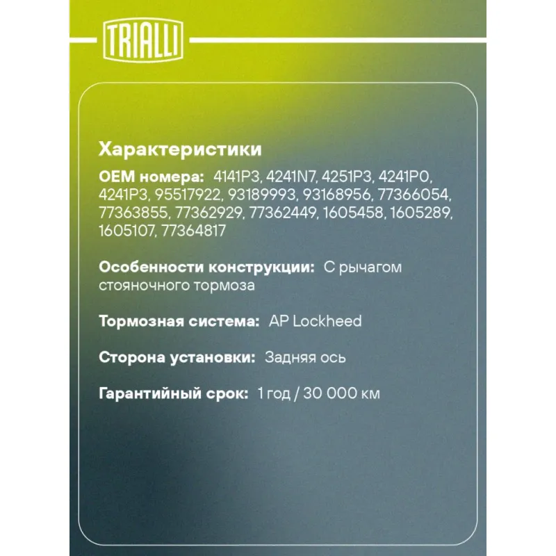 | Гарантийный срок | 1 год / 30 000 км |