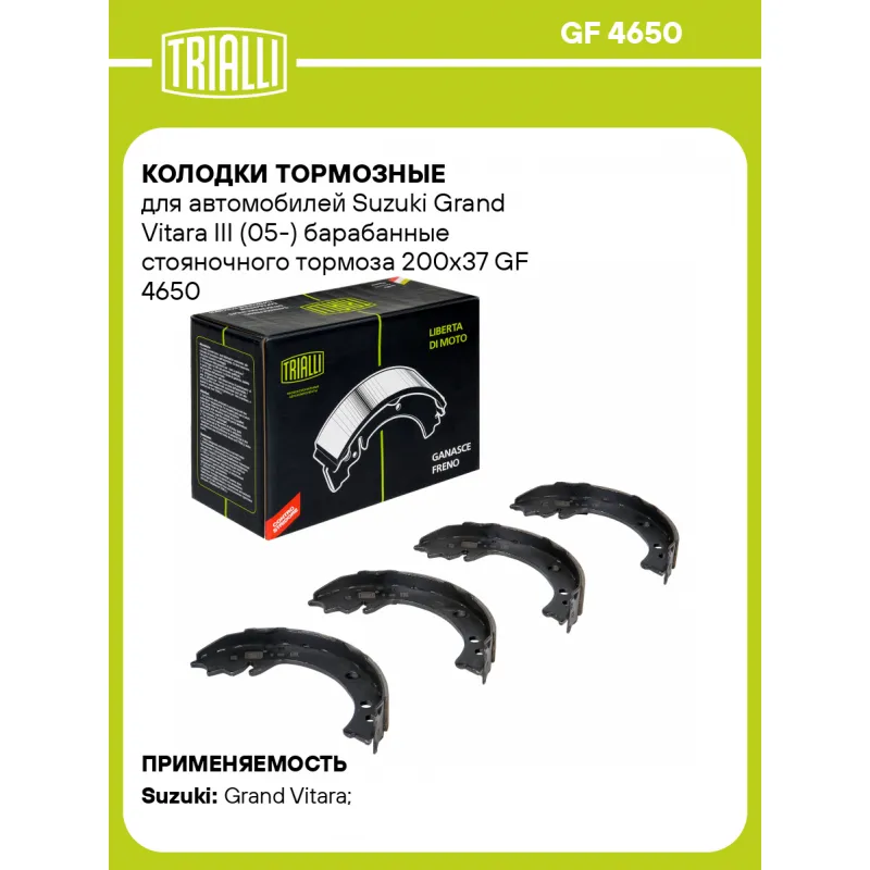 Колодки тормозные для автомобилей Suzuki Grand Vitara III (05-) барабанные стояночного тормоза 200x37 Характеристики: Артикул: GF 4650 OEM номера: 5460077K00 Гарантийный срок: 1 год / 30 000 км Сторона установки: Задняя ось Количество на автомобиль: 1 Ширина, мм: 37 Диаметр, мм: 200 Товарная линейка: BLACK Подходит для авто: Suzuki Grand Vitara (05-), Grand Vitara (05-) Для проверки применяемости отправьте VIN автомобиля через вкладку "Есть вопросы о товаре?" Комплектация: Колодка тормозная - 4 шт Гарантия: от 1 года.