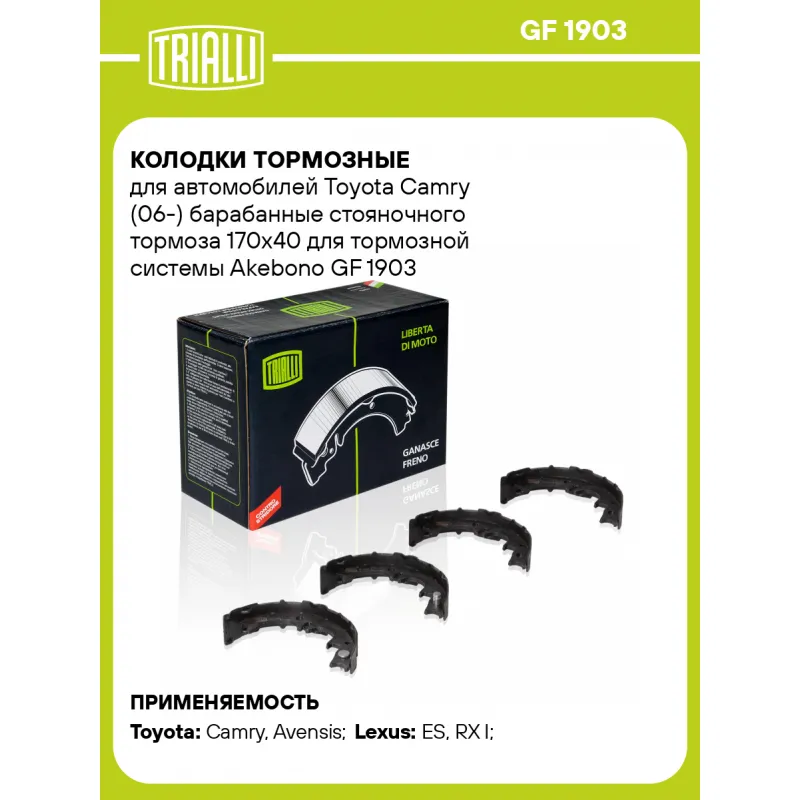 Колодки тормозные для автомобилей Toyota Camry (06-) барабанные стояночного тормоза 170x40 для тормозной системы Akebono Характеристики: Артикул: GF 1903 OEM номера: 4654020020, 4654033010, 4655020060, 4659033010, 4655020020, 4655020040, 4654020040, 4659020040, 4659020020, 4654007010, 4654020060, 4659020010, 4655033010, 4655020010, 4654020010, 4659020060, 4659033020, 4655033020, 4654020070 Гарантийный срок: 1 год / 30 000 км Сторона установки: Задняя ось Количество на автомобиль: 1 Ширина, мм: 40 Особенности конструкции:: Стояночная тормозная система Диаметр, мм: 170 Тормозная система: Akebono Товарная линейка: BLACK Подходит для авто: Toyota Camry (06-), Camry (06-), Camry (96-), Camry (01-), Avensis (97-), Avensis (97-), Camry (01-) Lexus ES (91-), ES (01-), RX I (97-) Для проверки применяемости отправьте VIN автомобиля через вкладку "Есть вопросы о товаре?" Комплектация: Колодка тормозная - 4 шт Гарантия: от 1 года.