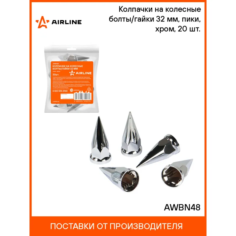 Колпачки на колесные болты/гайки 32 мм, пики, хром, 20 шт. Описание: Служат для защиты колесного крепежа от внешнего воздействия агрессивной среды, скрытия дефектов, а также являются отличным дополнением к внешнему тюнингу автомобиля. Характеристики: Артикул: AWBN48 Цвет: хром Размер гайки, мм: 32 Ширина, мм: 53 Длина, мм: 120 Применяемость: для грузовых автомобилей Комплектация: Колпачки - 20 шт Гарантия: от 1 года.