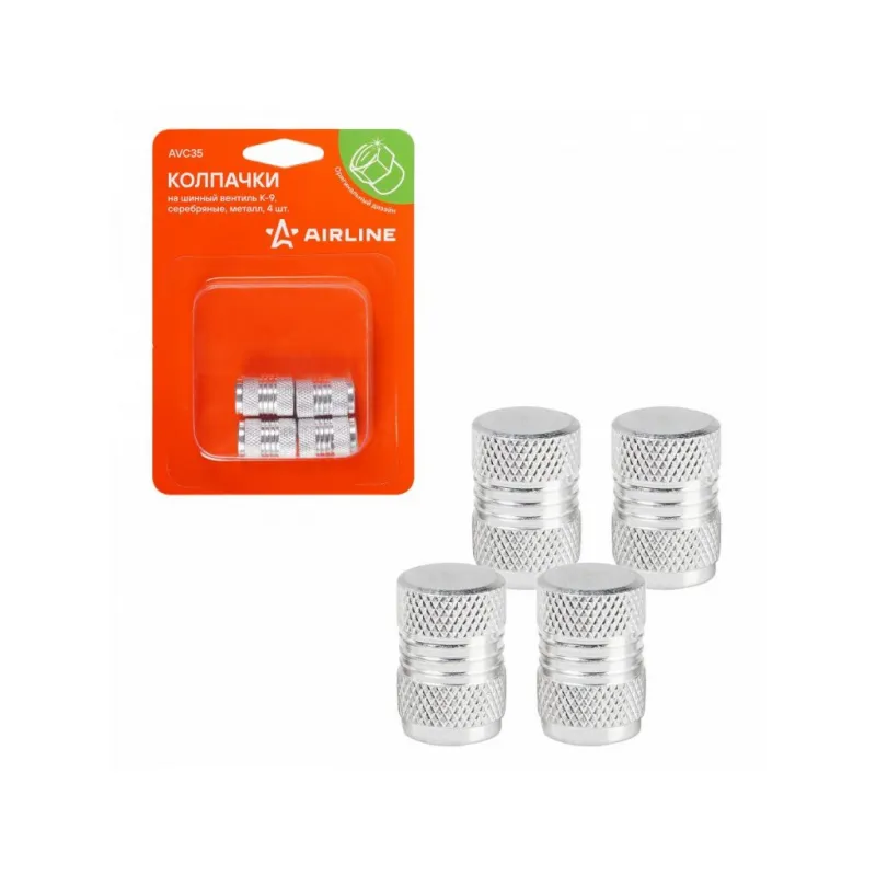 Колпачки на шинный вентиль K-9, серебряные, металл, 4 шт. Описание: Колпачки на шинный вентиль или колпачки на ниппель для любого вида транспорта применяются для защиты воздушного ниппеля шины от загрязнений и травли воздуха. Данная модель AIRLINE AVC35 имеет классическую форму. Защитные колпачки отлично подойдут для установки на велосипед, самокат, детской коляски и других колес стандартного вентиля. Надежно предотвращают любые механические повреждения. Колпачки придают колесам эстетический вид. Преимущества: - Морозостойкий материал; - Подходят для любого вида транспорта: автомобилей, мотоциклов, велосипедов, колясок и др.; - Силиконовое уплотнительное кольцо. Оно нужно для обеспечение дополнительной герметичности колесного вентиля, предотвращают утечку воздуха; - Защита вентиля от грязи и пыли; - Прочная упаковка, предотвращает повреждения колпачков во время транспортировки. Колпачки на ниппель помогут не только защитить вентиль, но и помогут украсить ваше транспортное средство, поэтому станет приятным подарком мужу, папе, бату, дяде, жене, маме, сестре, тете, коллеге. Этот аксессуар для машины - это универсальный подарок на любой праздник. В линейке AIRLINE, вы найдете широкий ассортимент высококачественных автотоваров и средств по уходу за вашим автомобилем, колпачки на шинный вентиль, колпачки на колесные болты гайки, съемник для колпачков, аксессуары для велосипедов, все для тюнинга, колпаки на автомобиль, светящиеся колпачки на колеса, аксессуары для мотоциклов, колясок. Мы гарантируем качество и надежность наших товаров. Характеристики: Артикул: AVC35 Цвет: серебряный Комплектация: Колпачки - 4 шт Блистер - 1 шт Гарантия: от 1 года.
