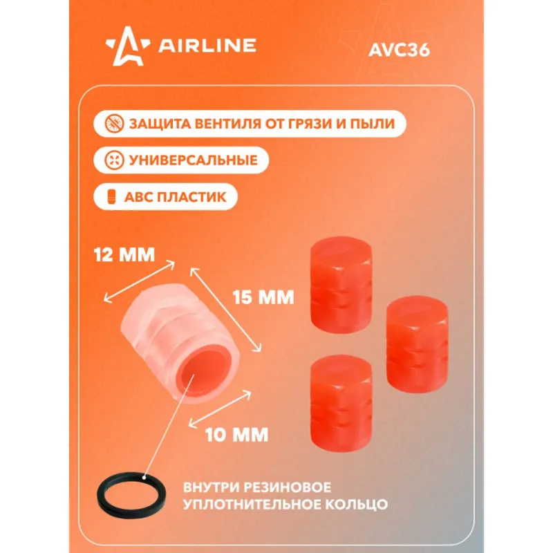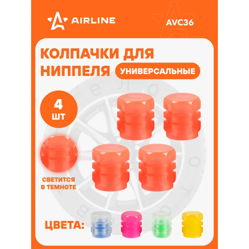 Колпачки на шинный вентиль S-1, светящиеся, оранжевые, ABS-пластик, 4 шт. Описание: Колпачки на шинный вентиль или колпачки на ниппель для любого вида транспорта применяются для защиты воздушного ниппеля шины от загрязнений и травли воздуха. Данная модель AIRLINE AVC36 изготовлена из ABS-пластика и имеет резиновую прокладку. Светятся в темноте! Защитные колпачки отлично подойдут для установки на велосипед, самокат, детской коляски и других колес стандартного вентиля. Надежно предотвращают любые механические повреждения. Колпачки придают колесам эстетический вид. Преимущества: - Защитные манжеты в комплекте; - Подходят для любого вида транспорта: автомобилей, мотоциклов, велосипедов, колясок и др.; - Силиконовое уплотнительное кольцо. Оно нужно для обеспечение дополнительной герметичности колесного вентиля, предотвращают утечку воздуха; - Защита вентиля от грязи и пыли; - Прочная упаковка, предотвращает повреждения колпачков во время транспортировки. Колпачки на ниппель помогут не только защитить вентиль, но и помогут украсить ваше транспортное средство, поэтому станет приятным подарком мужу, папе, бату, дяде, жене, маме, сестре, тете, коллеге. Этот аксессуар для машины - это универсальный подарок на любой праздник. В линейке AIRLINE, вы найдете широкий ассортимент высококачественных автотоваров и средств по уходу за вашим автомобилем, колпачки на шинный вентиль, колпачки на колесные болты гайки, съемник для колпачков, аксессуары для велосипедов, все для тюнинга, колпаки на автомобиль, светящиеся колпачки на колеса, аксессуары для мотоциклов, колясок. Мы гарантируем качество и надежность наших товаров. Характеристики: Артикул: AVC36 Цвет: оранжевый Комплектация: Колпачки - 4 шт Блистер - 1 шт Гарантия: от 1 года.