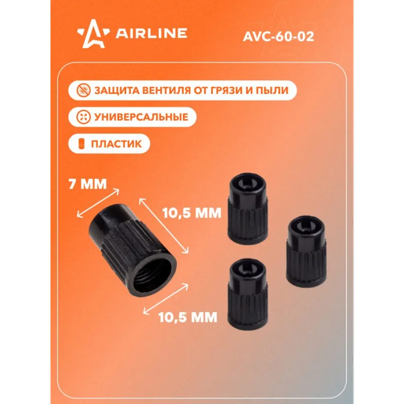 Колпачки на шинный вентиль с ключом, черные, пластик (60 шт.) Описание: Колпачки на шинный вентиль или колпачки на ниппель для любого вида транспорта применяются для защиты воздушного ниппеля шины от загрязнений и травли воздуха. Данная модель AIRLINE AVC-60-02 имеет классическую форму и сделана из морозостойкого пластика. Защитные колпачки отлично подойдут для установки на велосипед, самокат, детской коляски и других колес стандартного вентиля. Надежно предотвращают любые механические повреждения. Колпачки придают колесам эстетический вид. Преимущества: - Морозостойкий материал; - Подходят для любого вида транспорта: автомобилей, мотоциклов, велосипедов, колясок и др.; - Защита вентиля от грязи и пыли; - Прочная упаковка, предотвращает повреждения колпачков во время транспортировки. Колпачки на ниппель помогут не только защитить вентиль, но и помогут украсить ваше транспортное средство, поэтому станет приятным подарком мужу, папе, бату, дяде, жене, маме, сестре, тете, коллеге. Этот аксессуар для машины - это универсальный подарок на любой праздник. В линейке AIRLINE, вы найдете широкий ассортимент высококачественных автотоваров и средств по уходу за вашим автомобилем, колпачки на шинный вентиль, колпачки на колесные болты гайки, съемник для колпачков, аксессуары для велосипедов, все для тюнинга, колпаки на автомобиль, светящиеся колпачки на колеса, аксессуары для мотоциклов, колясок. Мы гарантируем качество и надежность наших товаров. Характеристики: Артикул: AVC-60-02 Цвет: черный Комплектация: Колпачки - 60 шт ПЭ-пакет - 1 шт Гарантия: от 1 года.