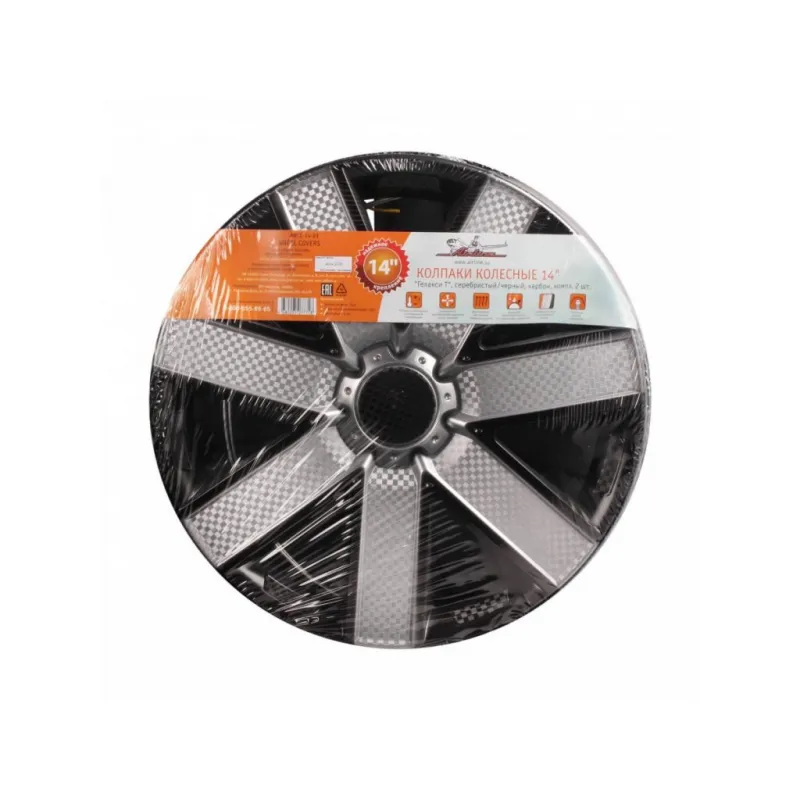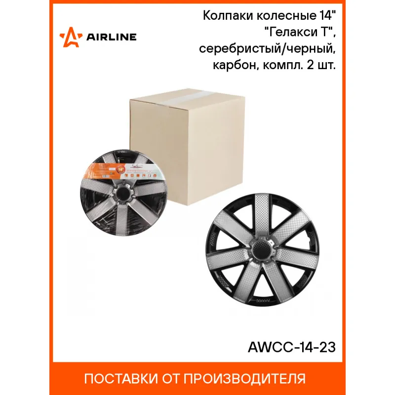 Колпаки колесные 14" "Гелакси Т", серебристый/черный, карбон, компл. 2 шт. Описание: Колпаки колесные AIRLINE AWCC-14-23 изготовлены из ударопрочного полистирола, имеют модную текстуру имитирующую карбон и покрашены в популярные цвета. Снабжены надежными универсальными креплениями позволяющие обеспечивать равномерное распределение давления на все защелки. Колпаки AIRLINE защитят тормозную систему от грязи и скроют изъяны штампованных дисков, тем самым украсив ваш автомобиль. Особенности: * Количество зажимов - 10 шт.; * Совпадают к размерам диска автомобиля; * Обод жесткий, регулируемый согласно инструкции; * Стойкие к повышению и понижению температуры; * Не препятствуют вентиляции тормозных дисков; * Защищает тормозную систему от грязи, соли и реагентов; * Открытый доступ к ниппелю; * Скрывают изъяны штампованных дисков; * Цвет: серебристый/черный; * Инструкция по установке в комплекте; Колпаки на диски автомобильные помогут преобразить Ваш автомобиль, поэтому это отличное приобретение себе и в подарок автомобилисту, мужу, папе, бату, дяде, жене, маме, сестре, тете, коллеге. Характеристики: Артикул: AWCC-14-23 Диаметр, дюйм: 14 Цвет: серебристый/черный Вид крепления: защелки+ металл. обруч Комплектация: Колпак - 2 шт Крепление (кольцо) - 2 шт Инструкция - 1 шт Гарантия: от 1 года.