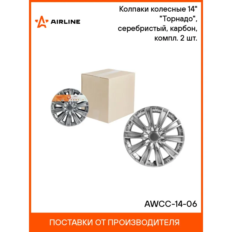 Колпаки колесные 14" "Торнадо", серебристый, карбон, компл. 2 шт. Описание: Колпаки AIRLINE AWCC-14-06 изготовлены из ударопрочного полистирола, имеют модную текстуру имитирующую карбон и покрашены в популярные цвета. Снабжены надежными универсальными креплениями позволяющие обеспечивать равномерное распределение давления на все защелки. Колпаки AIRLINE защитят тормозную систему от грязи и скроют изъяны штампованных дисков, тем самым украсив ваш автомобиль. Особенности: * Количество зажимов - 10 шт.; * Совпадают к размерам диска автомобиля; * Обод жесткий, регулируемый согласно инструкции; * Стойкие к повышению и понижению температуры; * Не препятствуют вентиляции тормозных дисков; * Защищает тормозную систему от грязи, соли и реагентов; * Открытый доступ к ниппелю; * Скрывают изъяны штампованных дисков; * Цвет: серебристый; * Инструкция по установке в комплекте; Колпаки на диски автомобильные помогут преобразить Ваш автомобиль, поэтому это отличное приобретение себе и в подарок автомобилисту, мужу, папе, бату, дяде, жене, маме, сестре, тете, коллеге. В линейке AIRLINE, вы найдете широкий ассортимент высококачественных автотоваров и средств по уходу за вашим автомобилем, аксессуары для авто в салон. Мы гарантируем качество и надежность наших товаров. Характеристики: Артикул: AWCC-14-06 Диаметр, дюйм: 14 Цвет: серебристый Вид крепления: защелки+ металл. обруч Комплектация: Колпаки - 2 шт Крепление (кольцо) - 2 шт Инструкция - 1 шт Гарантия: от 1 года.