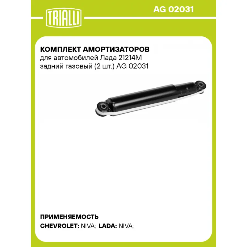 Комплект амортизаторов для автомобилей Лада 21214М задний газовый (2 шт.) Характеристики: Артикул: AG 02031 OEM номера: 21214-2915004, 21214-2915004-00, 21214-2915402-00 Товарная линейка: МП-серия Вид амортизатора: Масляный с газовым подпором низкого давления Тип верхнего крепления: Проушина/сайлентблок Тип нижнего крепления: Проушина/сайлентблок Диаметр корпуса, мм: 45 Диаметр штока, мм: 12,5 Ход штока, мм: 198 Тип амортизатора: Двухтрубный, гидравлический Ось (сторона установки): Сзади, слева/справа Дополнительная информация: Упаковка изделия может отличаться от представленной на фото Присоединительная длина 2, мм: 513 Присоединительная длина 1, мм: 315 Гарантийный срок: 2 года/60 000 км Комплектация: Амортизатор задний - 2 шт Шарнир резинометаллический - 4 шт Гарантия: от 1 года.