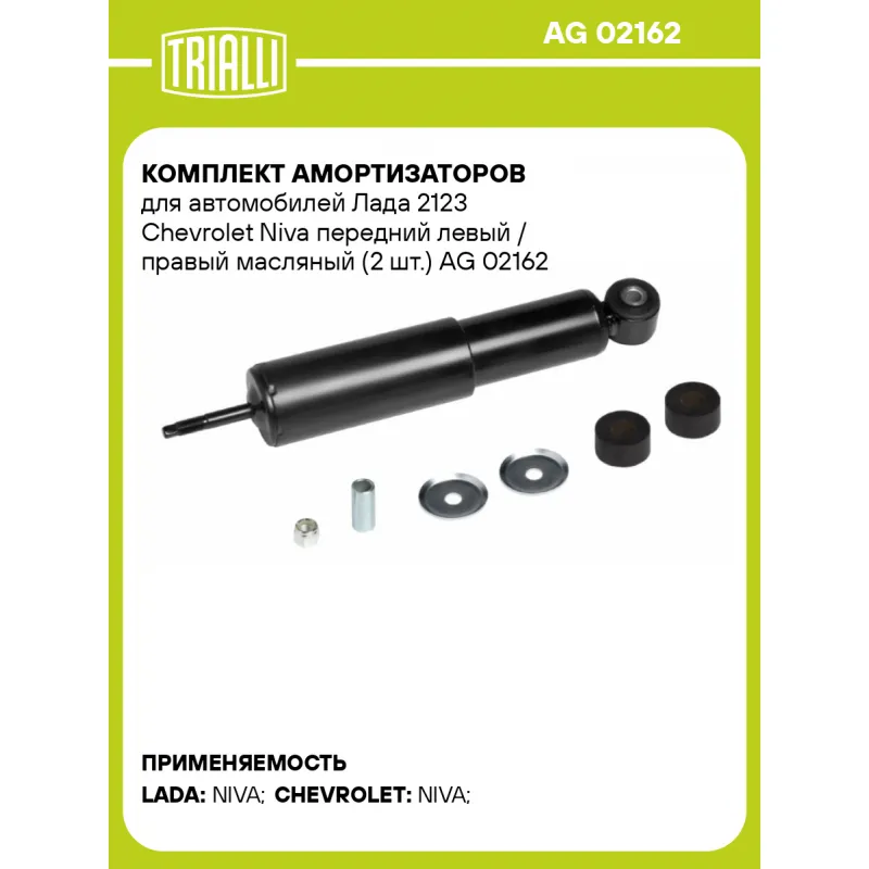 Комплект амортизаторов для автомобилей Лада 2123 Chevrolet Niva передний левый / правый масляный (2 шт.) Характеристики: Артикул: AG 02162 OEM номера: 2123-2905004, 21230-2905004-00, 21230-2905402-03, 21230-2905402-82 Товарная линейка: МП-серия Вид амортизатора: Масляный Тип верхнего крепления: Шток Тип нижнего крепления: Проушина/сайлентблок Диаметр корпуса, мм: 45 Диаметр штока, мм: 12,5 Ход штока, мм: 118 Размер резьбы штока: M10x1.25 Тип амортизатора: Двухтрубный, гидравлический Ось (сторона установки): Спереди, слева/справа Дополнительная информация: Упаковка изделия может отличаться от представленной на фото Присоединительная длина 2, мм: 349 Присоединительная длина 1, мм: 231 Гарантийный срок: 2 года/60 000 км Комплектация: Амортизатор передний - 2 шт Подушка резиновая - 4 шт Шайба - 4 шт Втулка распорная - 2 шт Гайка крепежная - 2 шт Шарнир резинометаллический - 2 шт Гарантия: от 1 года.