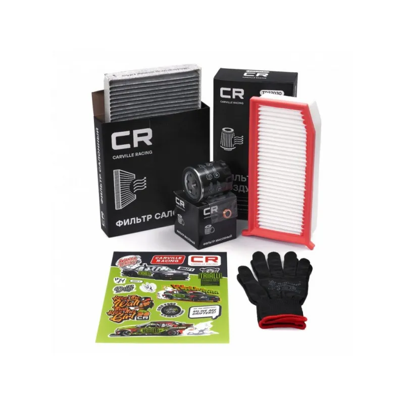 Комплект фильтров для ТО Renault Duster (10-) 1.6i дв. H4M Характеристики: Артикул: CRKIT1010 OEM номера: 152085758R, 165467674R, 82 01 370 532 Количество на автомобиль: 1 Комплектация: Перчатки - 1 пар Стикерпак CARVILLE RACING - 1 шт Фильтр масляный - 1 шт Уплотнительное кольцо сливной пробки 1102601M02 - 1 шт Фильтр воздушный - 1 шт Фильтр масляный - 1 шт Фильтр воздушный - 1 шт Фильтр салонный угольный - 1 шт Гарантия: от 1 года.