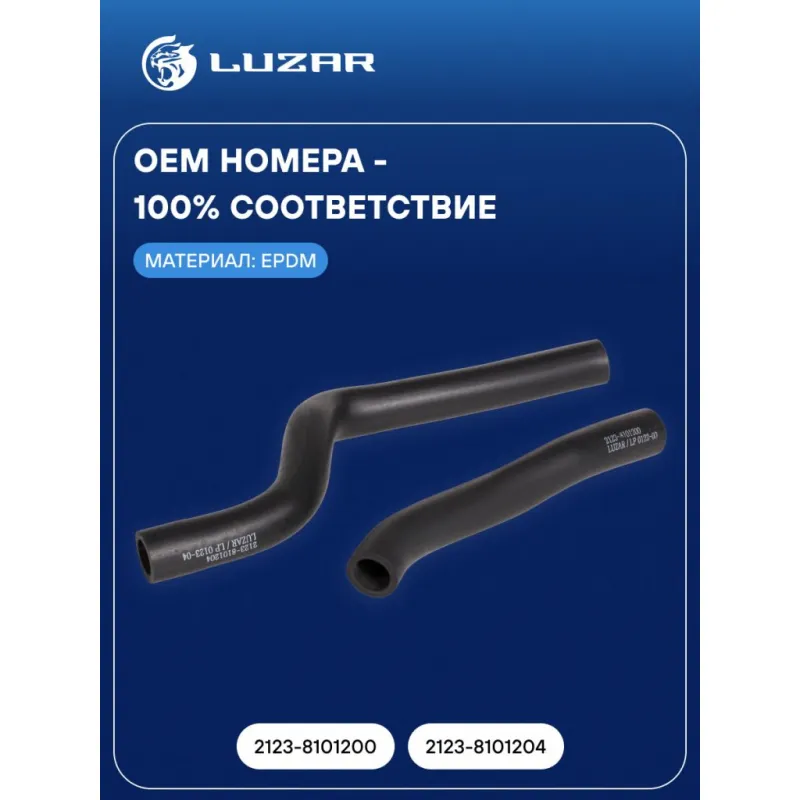 Патрубки отопителя для автомобилей Лада 2123 Chevrolet Niva (EPDM, кмпл., 2шт.) Характеристики: Артикул: LPKh 0123 OEM номера: 2123-8101200, 2123-8101204 Количество на автомобиль: 1 Трансмиссия: MT Кондиционер: +/- Подходит для авто: ВАЗ 2123 Chevrolet Niva (02-) Для проверки применяемости отправьте VIN автомобиля через вкладку "Есть вопросы о товаре?" Комплектация: Патрукби отопления (EPDM) - 2 шт Паспорт изделия. - 1 шт Гарантия: от 1 года.