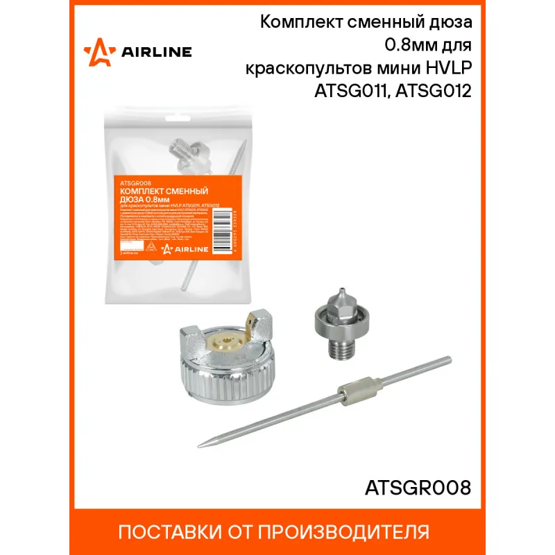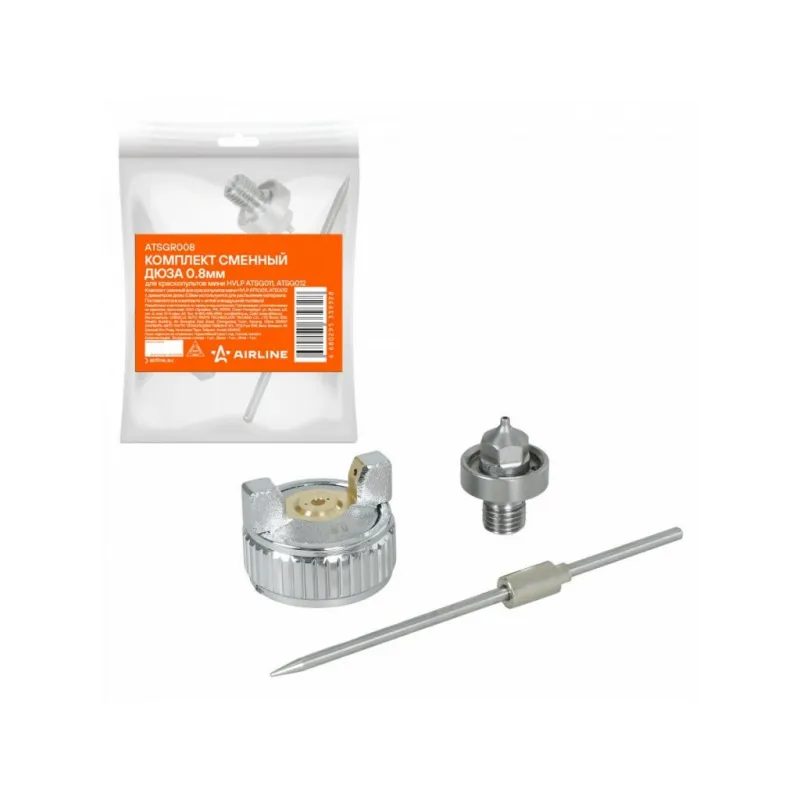 Комплект сменный дюза 0.8мм для краскопультов мини HVLP ATSG011, ATSG012 Описание: Комплект сменный для краскопультов мини HVLP ATSG011, ATSG012 с диаметром дюзы 0,8мм используется для распыления материала. Поставляется в комплекте с иглой и воздушной головкой. Характеристики: Артикул: ATSGR008 Комплектация: Воздушная голова - 1 шт Дюза - 1 шт Игла - 1 шт Гарантия: от 1 года.