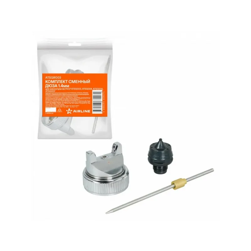 Комплект сменный дюза 1.4мм для краскопультов HVLP ATSG003, ATSG004, ATSG006, ATSG007 Описание: Комплект сменный для краскопультов HVLP ATSG003, ATSG004, ATSG006, ATSG007 с диаметром дюзы 1,4мм используется для распыления материала. Поставляется в комплекте с иглой и воздушной головкой. Характеристики: Артикул: ATSGR003 Комплектация: Воздушная голова - 1 шт Дюза - 1 шт Игла - 1 шт Гарантия: от 1 года.