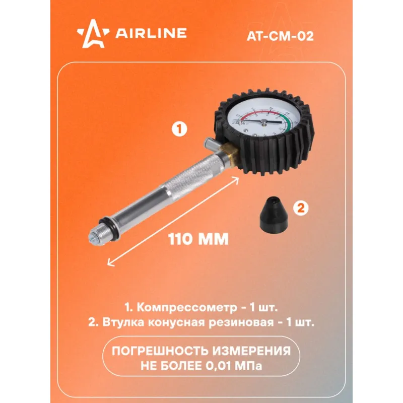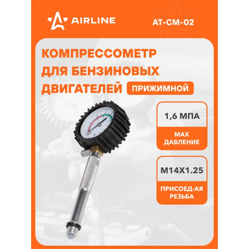 Компрессометр для бензиновых двигателей резьбовой Описание: Компрессометр состоит из манометра, присоеденительного шланга с резьбовым наконечником, запорного клапана. Манометр защищён резиновым чехлом. Запорный клапан новой усиленной конструкции. Характеристики: Артикул: AT-CM-02 OEM номера: 40092 Погрешность измерения, не более МПа (кг/см.кв): 0.01 (0.1) Присоединительная резьба: M14x1.25 Верхний предел измерения давления, МПа (кгс/см.кв): 1.6 (16) Длина шланга/трубки, мм: 110 Относительная влажность воздуха при эксплуатации, %: 30-80 Температура окружающего воздуха при эксплуатации, °С: -60- +60 Комплектация: Компрессометр - 1 шт Гарантия: от 1 года.