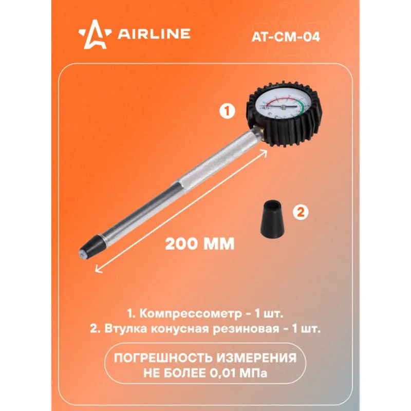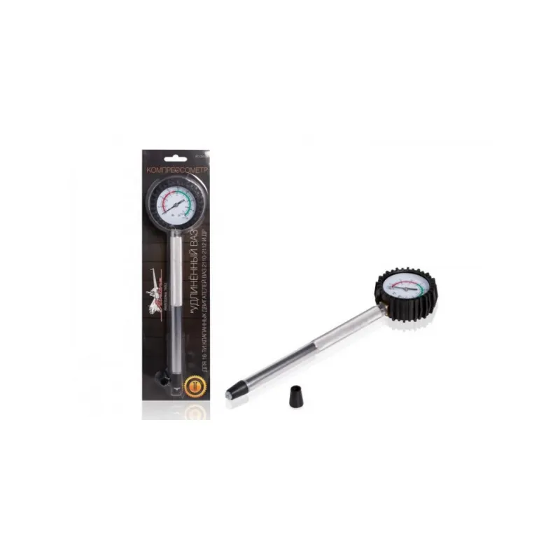 Компрессометр для бензиновых двигателей прижимной, удлиненный (ВАЗ г.в. 2110-12, 16 клап) Описание: Компрессометр состоит из манометра, присоеденительного шланга с резьбовым наконечником, запорного клапана. Манометр защищён резиновым чехлом. Запорный клапан новой усиленной конструкции. Характеристики: Артикул: AT-CM-04 OEM номера: 40096 Погрешность измерения, не более МПа (кг/см.кв): 0.01 (0.1) Присоединительная резьба: - Верхний предел измерения давления, МПа (кгс/см.кв): 1.6 (16) Длина шланга/трубки, мм: 200 Относительная влажность воздуха при эксплуатации, %: 30-80 Температура окружающего воздуха при эксплуатации, °С: -60- +60 Комплектация: Компрессометр - 1 шт Гарантия: от 1 года.