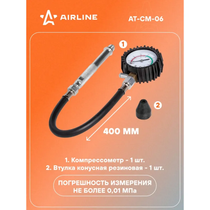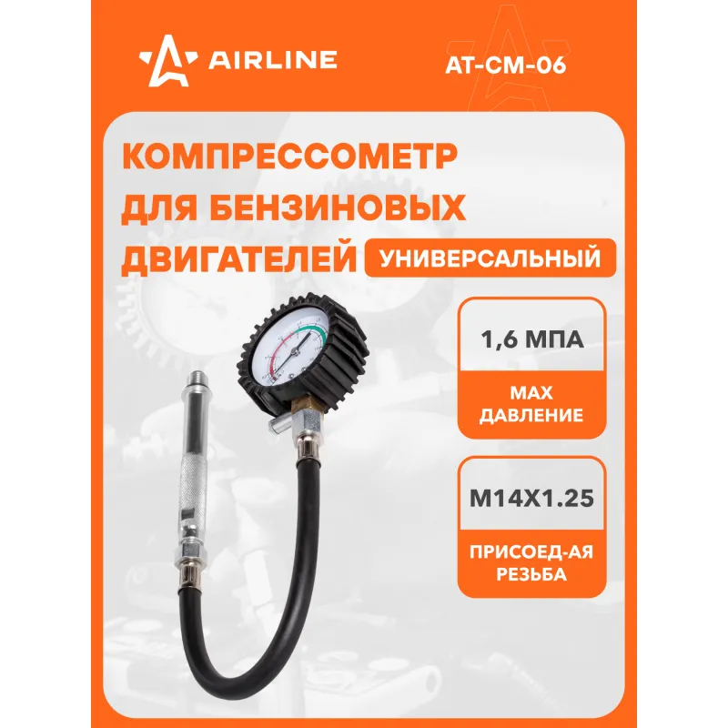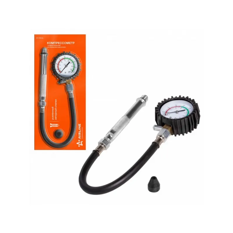 Компрессометр для бензиновых двигателей универсальный Описание: Компрессометр состоит из манометра, присоеденительного шланга с резьбовым наконечником, запорного клапана, клапана сброса давления. Манометр защищён резиновым чехлом. Запорный клапан новой усиленной конструкции. Характеристики: Артикул: AT-CM-06 OEM номера: 40091 Погрешность измерения, не более МПа (кг/см.кв): 0.01 (0.1) Присоединительная резьба: M14x1.25 Верхний предел измерения давления, МПа (кгс/см.кв): 1.6 (16) Длина шланга/трубки, мм: 400 Относительная влажность воздуха при эксплуатации, %: 30-80 Температура окружающего воздуха при эксплуатации, °С: -60- +60 Комплектация: Компрессометр - 1 шт Втулка конусная резиновая - 1 шт Гарантия: от 1 года.
