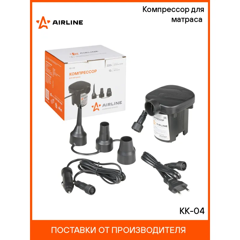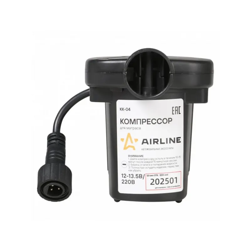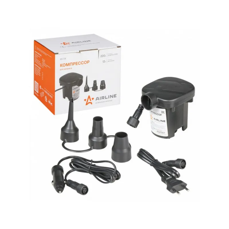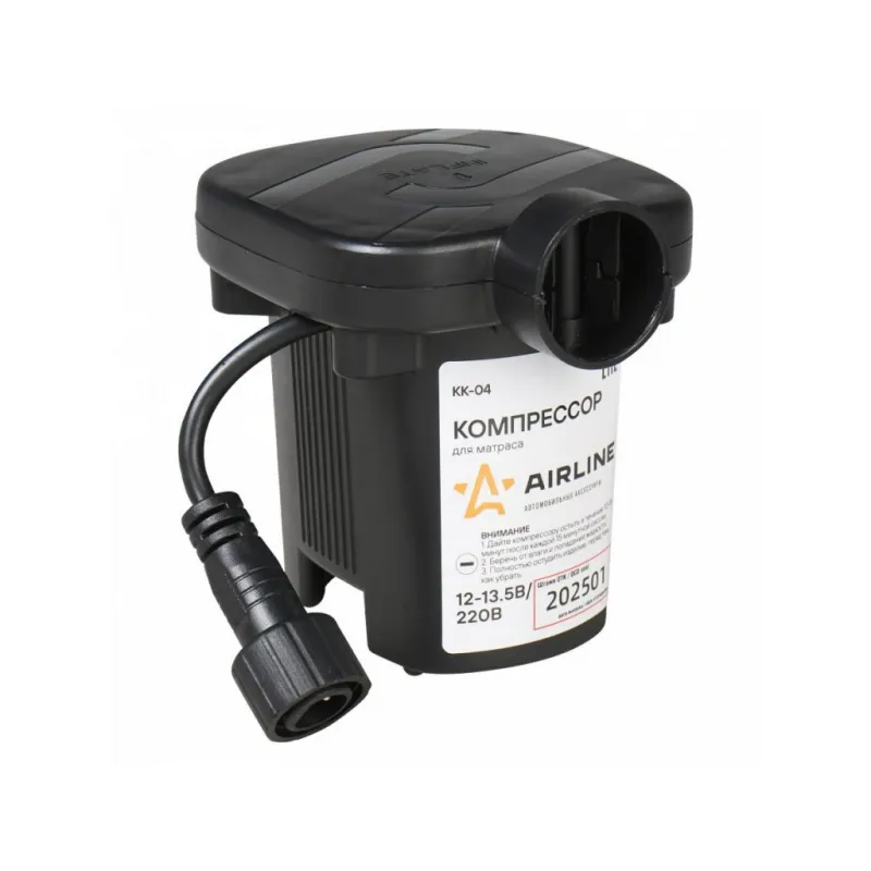 Компрессор для матраса (12В/220В, 280 л/мин) Описание: Электрический компрессор низкого давления с питанием от сети 220в и автомобильной сети 12в, в комплекте два адаптера питания, для накачки лодок, матрасов, надувных игрушек. Данный насос универсален, благодаря идущим в комплект поставки насадкам. Этот компрессор обеспечивает быстрый и эффективный процесс надувания без необходимости использования ручного насоса. Компрессор оснащен различными насадками и клапанами, что позволяет использовать его для разных типов надувных предметов. Благодаря своей компактности и портативности, вы сможете легко брать его с собой в поездки, на пикники или на отдых. Три дополнительные насадки. Производительность 280 л/мин. Электрический компрессор — это незаменимый аксессуар для владельцев надувных предметов, поэтому будет практичным приобретением в подарок тем, кто ценит удобство, экономию времени и силы, мужчине, мужу, брату, парню, другу на День рождения и другой праздник. Характеристики: Артикул: KK-04 Тип: Электрический Максимальный ток, А: 5 Напряжение, В: 12, 220 Производительность, л/мин: 280 Время непрерывной работы, мин.: 10 Длина кабеля питания, м: 1,5 Мощность, Вт: 50 Комплектация: Компрессор центробежный 12В/220В - 1 шт Переходники-насадки - 3 шт Инструкция по применению - 1 шт Индивидуальная коробка - 1 шт Адаптер 12В - 1 шт Адаптер 220В - 1 шт Гарантия: от 1 года.