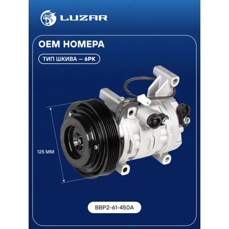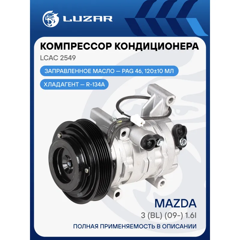 Компрессор кондиционера для автомобилей 3 (BL) (09-) 1.6i Характеристики: Артикул: LCAC 2549 OEM номера: BBP2-61-450A Сопутствующий товар: Датчики давления хладагента: LRPS 1401 Количество на автомобиль: 1 Объём заправленного масла, мл: 120±10 Вид хладагента: R134a Тип шкива: 6PK Диаметр шкива, мм: 125 Вид заправленного масла: PAG 46 Ид.№ компрессора: H12 Сопутствующий товар: Радиаторы кондиционера (конденсеры): LRAC 25Z6 Сопутствующий товар: Ресиверы-осушители: LCR 2501 Мощность, кВт: 2.5 Подходит для авто: Mazda 3 (09-) Для проверки применяемости отправьте VIN автомобиля через вкладку "Есть вопросы о товаре?" Комплектация: Компрессор кондиционера Паспорт изделия Гарантия: от 1 года.