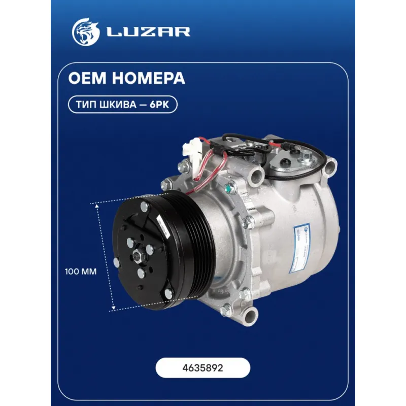Компрессор кондиционера для автомобилей 9-3 I (98-) Характеристики: Артикул: LCAC 0593 OEM номера: 4635892 Количество на автомобиль: 1 Объём заправленного масла, мл: 150 Вид хладагента: R134a Тип шкива: 6PK Диаметр шкива, мм: 100 Вид заправленного масла: PAG 46 Ид.№ компрессора: TRS105 Мощность, кВт: 2 Подходит для авто: SAAB... Читать полностью →