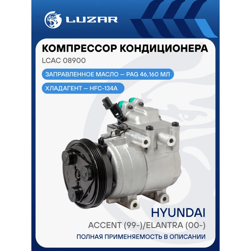 Компрессор кондиционера для автомобилей Accent (99-)/Elantra (00-) Характеристики: Артикул: LCAC 08900 OEM номера: 97701-25100, 977012D000, 977012C000 Количество на автомобиль: 1 Объём заправленного масла, мл: 160 Вид хладагента: HFC-134a Тип шкива: 4PK Диаметр шкива, мм: 123.4 Вид заправленного масла: PAG 46 Ид.№ компрессора: HS-15 Сопутствующий товар: Радиаторы кондиционера (конденсеры): LRAC HUAc99160; LRAC HUAc99250 Сопутствующий товар: Ресиверы-осушители: LCD 0801 Мощность, кВт: 2,5 Подходит для авто: Hyundai Avante XD (00-), Accent II (99-), Accent II (TagAZ) (01-), Elantra III (00-) Для проверки применяемости отправьте VIN автомобиля через вкладку "Есть вопросы о товаре?" Комплектация: Компрессор кондиционера Паспорт изделия Уплотнительные колечки - 2 шт Гарантия: от 1 года.