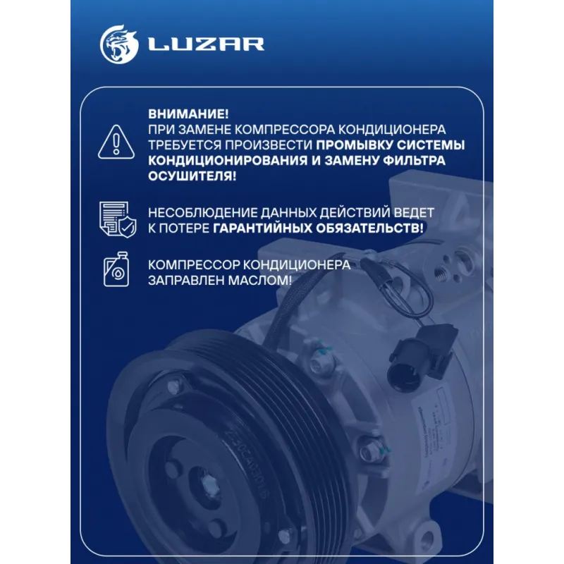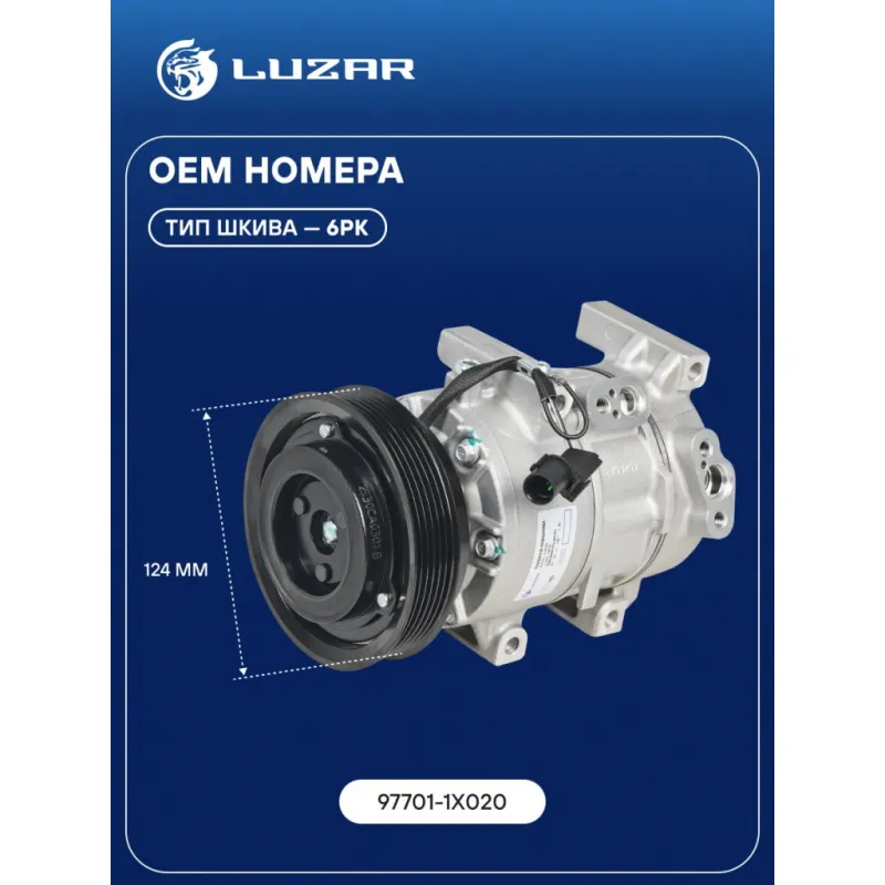 Компрессор кондиционера для автомобилей KIA Cerato II (09-) 1.6i Характеристики: Артикул: LCAC 0819 OEM номера: 97701-1X020 Сопутствующий товар: Датчики давления хладагента: LRPS 0807 Количество на автомобиль: 1 Объём заправленного масла, мл: 100±10 Вид хладагента: R-134a Тип шкива: 6PK Диаметр шкива, мм: 124 Вид заправленного масла: PAG 46 Ид.№ компрессора: 6DV12 Сопутствующий товар: Радиаторы кондиционера (конденсеры): LRAC 08M1 Мощность, кВт: 2 Подходит для авто: Kia Cerato II (09-) Для проверки применяемости отправьте VIN автомобиля через вкладку "Есть вопросы о товаре?" Комплектация: Компрессор кондиционера Паспорт изделия Уплотнительные колечки - 2 шт Гарантия: от 1 года.