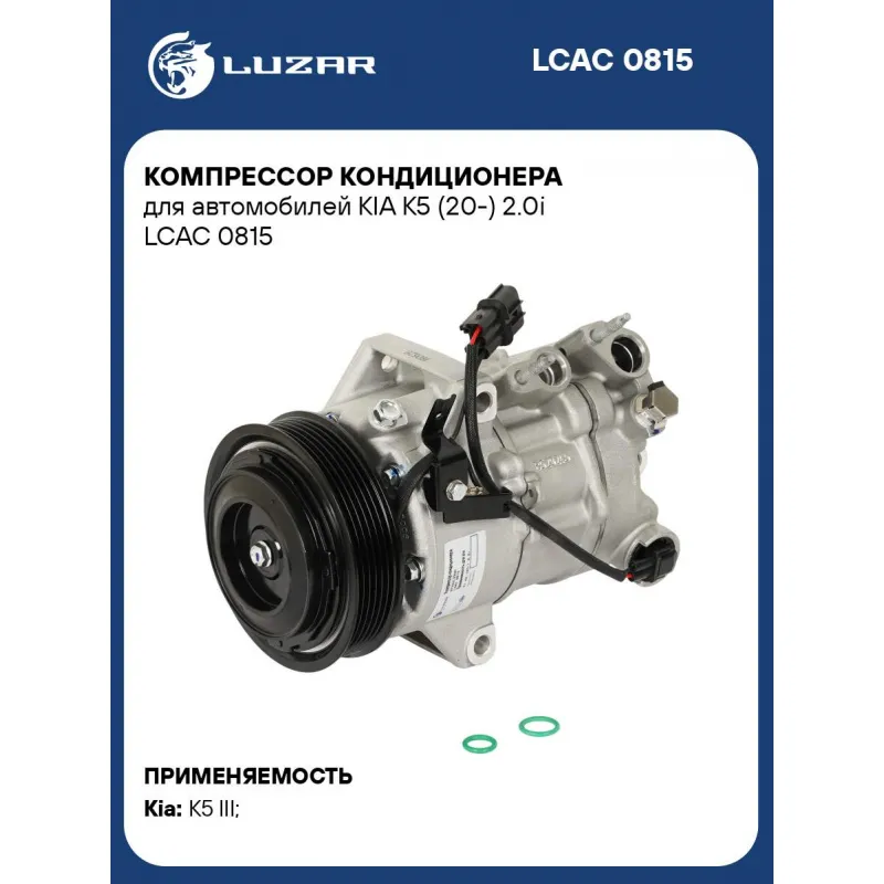 Компрессор кондиционера для автомобилей KIA K5 (20-) 2.0i Характеристики: Артикул: LCAC 0815 OEM номера: 97701L2200 Сопутствующий товар: Радиаторы кондиционера (конденсеры): LRAC 0880 Количество на автомобиль: 1 Объём заправленного масла, мл: 100±10 Вид хладагента: R-134a Тип шкива: 6PK Диаметр шкива, мм: 114 Вид заправленного масла: PAG 46 Ид.№ компрессора: 6SEU12 Мощность, кВт: 3 Подходит для авто: Kia K5 III (20-) Для проверки применяемости отправьте VIN автомобиля через вкладку "Есть вопросы о товаре?" Комплектация: Компрессор кондиционера Уплотнительные кольца - 2 шт Паспорт изделия Гарантия: от 1 года.