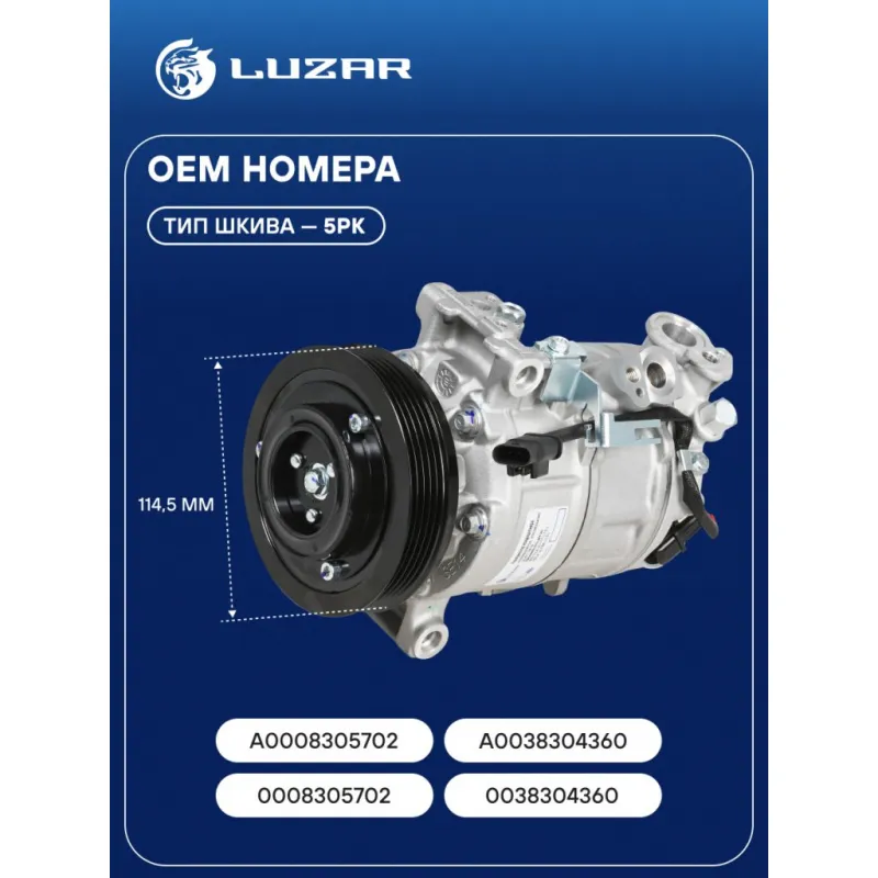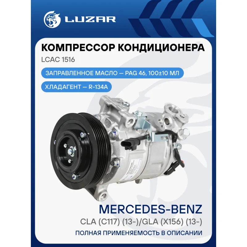 Компрессор кондиционера для автомобилей Mercedes-Benz CLA (С117) (13-)/GLA (X156) (13-) Характеристики: Артикул: LCAC 1516 OEM номера: A0008305702, A0038304360, 0008305702, 0038304360 Сопутствующий товар: Датчики давления хладагента: LRPS 1550 Количество на автомобиль: 1 Объём заправленного масла, мл: 100±10 Вид хладагента: R-134a Тип шкива: 5PK Диаметр шкива, мм: 114.5 Вид заправленного масла: PAG 46 Ид.№ компрессора: 6SES14C Сопутствующий товар: Управляющие клапаны: LCCV 1503; Комплектующие компрессора: LCCV 1503 Мощность, кВт: 2,5 Подходит для авто: Mercedes-Benz CLA C117 (13-), GLA X156 (13-), A-Class W176 (12-), B-Class W246 (13-) Для проверки применяемости отправьте VIN автомобиля через вкладку "Есть вопросы о товаре?" Комплектация: Компрессор кондиционера Резиновые колечки - 2 шт Паспорт изделия Гарантия: от 1 года.