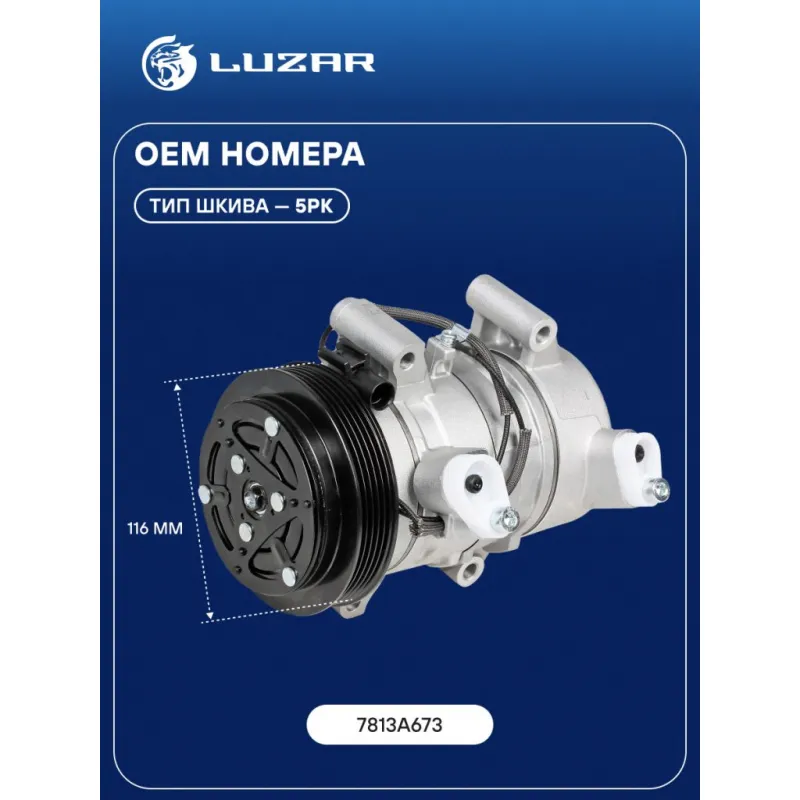 Компрессор кондиционера для автомобилей Pajero Sport III (15-)/L200 V (15-) 2.4D Характеристики: Артикул: LCAC 1149 OEM номера: 7813A673 Количество на автомобиль: 1 Объём заправленного масла, мл: 150±10 Вид хладагента: R134a Тип шкива: 5PK Диаметр шкива, мм: 116 Вид заправленного масла: PAG 46 Ид.№ компрессора: CR12SB Сопутствующий товар: Радиаторы кондиционера (конденсеры): LRAC 11153; LRAC 1150 Мощность, кВт: 2,5 Подходит для авто: Mitsubishi Pajero Sport (15-), L200 (15-) Для проверки применяемости отправьте VIN автомобиля через вкладку "Есть вопросы о товаре?" Комплектация: Компрессор кондиционера Паспорт изделия Гарантия: от 1 года.
