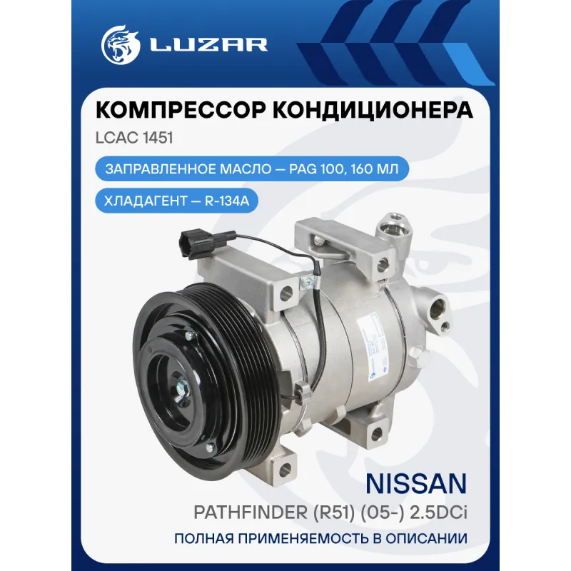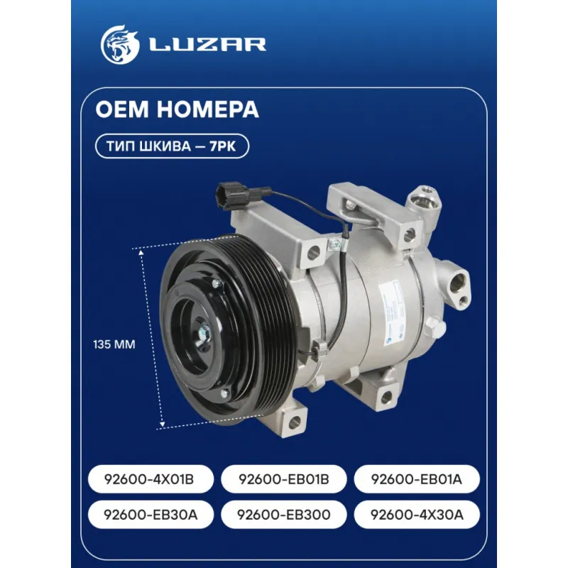 Компрессор кондиционера для автомобилей Pathfinder (R51) (05-) 2.5dCi Характеристики: Артикул: LCAC 1451 OEM номера: 92600-4X01B, 92600-EB01B, 92600-EB01A, 92600-EB30A, 92600-EB300, 92600-4X30A Сопутствующий товар: Датчики давления хладагента: LRPS 1401 Количество на автомобиль: 1 Объём заправленного масла, мл: 160 Вид хладагента: R134a Тип шкива: 7PK Диаметр шкива, мм: 135 Вид заправленного масла: PAG 100 Ид.№ компрессора: DKS17D Сопутствующий товар: Радиаторы кондиционера (конденсеры): LRAC 14EB Сопутствующий товар: Клапаны расширительные кондиционера (ТРВ): LTRV 1451 Мощность, кВт: 2,5 Подходит для авто: Nissan Pathfinder R51 (05-) Для проверки применяемости отправьте VIN автомобиля через вкладку "Есть вопросы о товаре?" Комплектация: Компрессор кондиционера Паспорт изделия Гарантия: от 1 года.