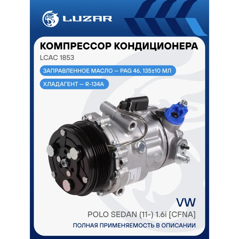 Компрессор кондиционера для автомобилей Polo Sedan (11-) 1.6i [CFNA] Характеристики: Артикул: LCAC 1853 OEM номера: 6RD820803, 6RD820803D Сопутствующий товар: Радиаторы кондиционера (конденсеры): LRAC 1853 Сопутствующий товар: Клапаны расширительные кондиционера (ТРВ): LTRV 1853 Сопутствующий товар: Датчики давления хладагента: LRPS 1801 Сопутствующий товар: Муфты компрессоров: LMAC 1801, LMCC 1801, LCP 1801 Количество на автомобиль: 1 Объём заправленного масла, мл: 135±10 Вид хладагента: R-134a Тип шкива: 6PK Диаметр шкива, мм: 109 Вид заправленного масла: PAG 46 Ид.№ компрессора: 6V12 Сопутствующие товары:: LMAC 1801; Комплектующие компрессора: LMAC 1801, LMCC 1801, LCP 1801 Мощность, кВт: 2 Подходит для авто: Volkswagen Polo Sedan (RUS) (10-) Для проверки применяемости отправьте VIN автомобиля через вкладку "Есть вопросы о товаре?" Комплектация: Компрессор кондиционера Паспорт изделия Уплотнительные колечки - 2 шт Гарантия: от 1 года.