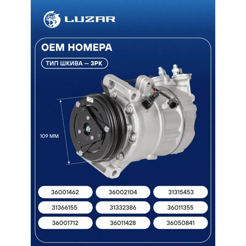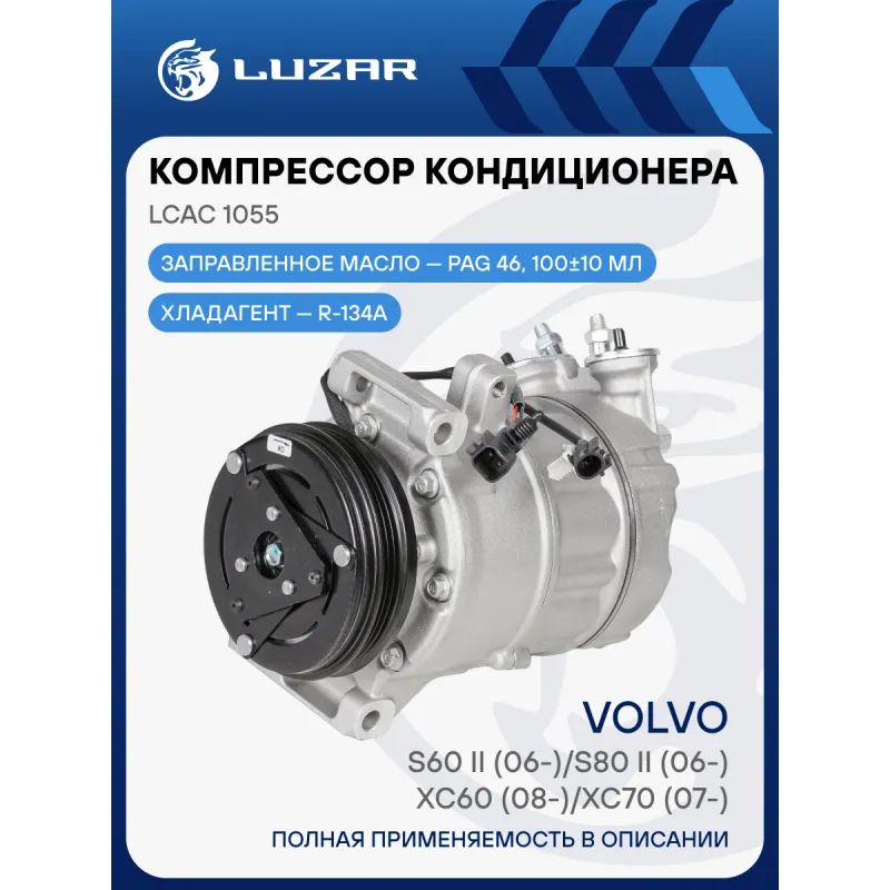 Компрессор кондиционера для автомобилей Volvo S60 II (06-)/S80 II (06-)/XC60 (08-)/XC70 (07-) Характеристики: Артикул: LCAC 1055 OEM номера: 36001462, 36002104, 31315453, 31366155, 31332386, 36011355, 36001712, 36011428, 36050841 Сопутствующий товар: Ресиверы-осушители: LCR 1005 Сопутствующий товар: Клапаны расширительные кондиционера (ТРВ): LTRV 1041; LTRV 1054; LTRV 1092; LTRV 1093 Сопутствующий товар: Датчики давления хладагента: LRPS 1004 Сопутствующий товар: Управляющие клапаны: LCCV 1007 Комплектующие компрессора: LCCV 1007 Количество на автомобиль: 1 Объём заправленного масла, мл: 100±10 Вид хладагента: R-134a Тип шкива: 3PK Диаметр шкива, мм: 109 Вид заправленного масла: PAG 46 Ид.№ компрессора: DCS-17EC Сопутствующий товар: Радиаторы кондиционера (конденсеры): LRAC 1054; LRAC 1060 Мощность, кВт: 2.4 Подходит для авто: Volvo S60 II (10-), S80 II (06-), XC60 (07-), S60 II (10-), S80 II (06-), V60 (10-), V70 (07-), XC60 (07-), XC70 (07-) Для проверки применяемости отправьте VIN автомобиля через вкладку "Есть вопросы о товаре?" Комплектация: Компрессор кондиционера Паспорт изделия Уплотнительные колечки - 2 шт Гарантия: от 1 года.