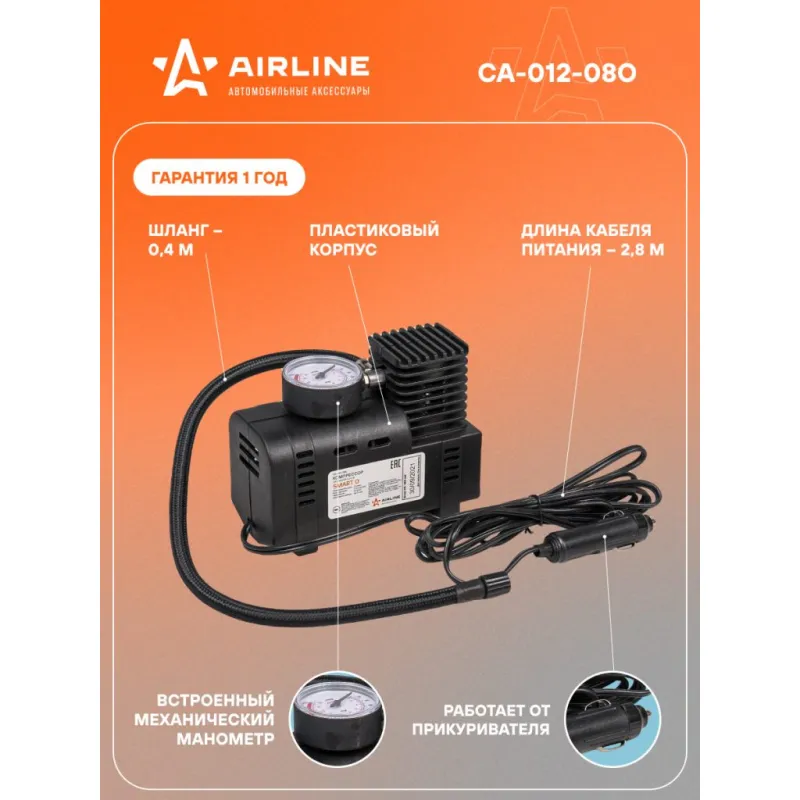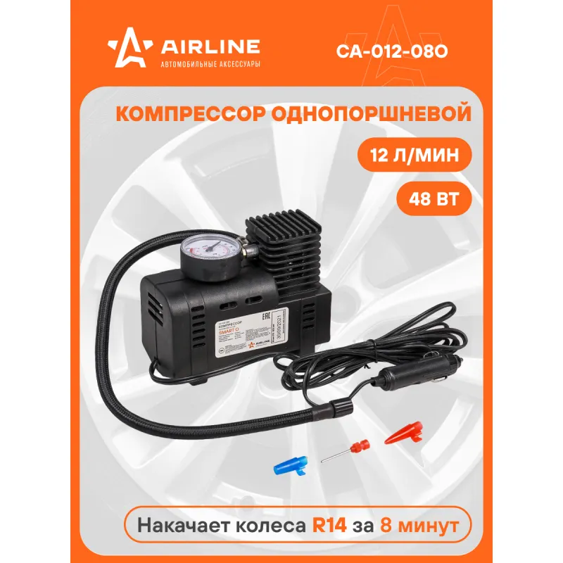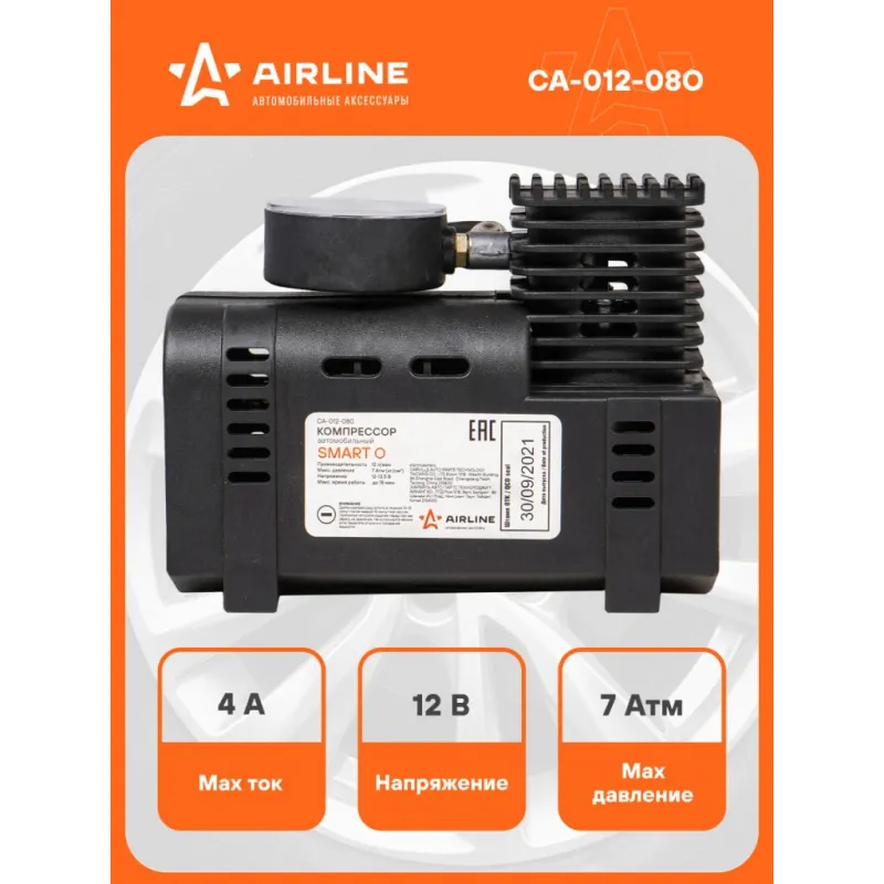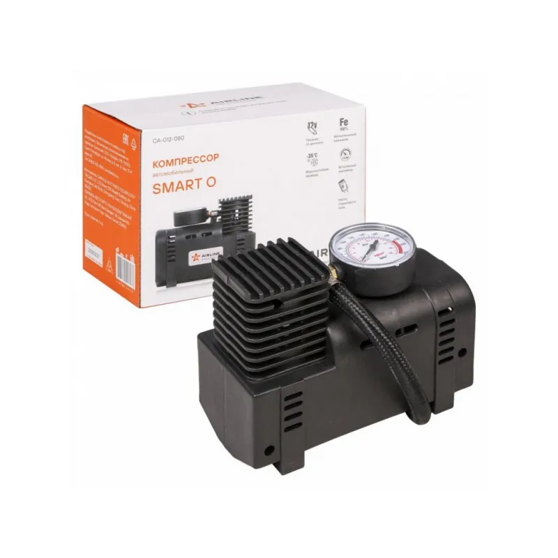 Компрессор SMART O пластиковый корпус (12л/мин., 7 АТМ) Описание: Автомобильный компрессор предназначен для получения сжатого воздуха в дорожных условиях. Электрический автомобильный компрессор — это незаменимый аксессуар для владельцев авто и мототехники. С его помощью вы можете быстро и просто накачать колеса. Воздушный электрокомпрессор имеет мощность 48 Вт, максимальную производительность 12 л/мин и встроенный манометр для контроля давления. В наборе идет 3 насадки для работы с разными предметами. Двигатель облегченный, есть система охлаждения. Его можно хранить в гараже или перевозить в багажнике автомобиля. Компрессорная электромашина для накачивания воздуха работает от прикуривателя. Морозостойкие провода до -35С. Компрессор подключается к ниппелю колеса и висит на нем во время работы. При этом время накачивания полностью спущенного колеса R13 до 2 Атм не превысит 6 минут. Автоматический электронасос подойдет для накачивания и подкачки шин в машинах любой марки и модели, легковых или грузовых, а также подходит для камер детской коляски, квадроцикла, мотоцикла, мопеда, скутера, самоката или электровелосипеда и другого транспорта. Сменив наконечник, вы также сможете надувать с помощью автоаксессуара спортивные снаряды любой формы, большие мячи, батуты, бассейны, резиновые лодки, ватрушки. Электрический автомобильный компрессор — это незаменимый аксессуар для владельцев авто и мототехники, поэтому будет отличным приобретением в подарок автовладельцу, мужчине, мужу, брату, парню, другу и каждому автомобилисту в машину на День рождения и другой праздник. Характеристики: Артикул: CA-012-08O Тип: Электрический Максимальный ток, А: 4 Напряжение, В: 12 Производительность, л/мин: 12 Максимальное давление, Атм (кг/см2): 7 Время непрерывной работы, мин.: 10 Длина кабеля питания, м: 2,8 Длина шланга, м: 0,4 Время накачивания колеса R14 от 0 до 2 Атм, мин: 8 Мощность, Вт: 48 Манометр: Встроенный Комплектация: Поршневой компрессор высокого давления с манометром - 1 шт Переходники-насадки - 3 шт Инструкция по применению - 1 шт Гарантийный талон - 1 шт Индивидуальная коробка - 1 шт Гарантия: от 1 года.