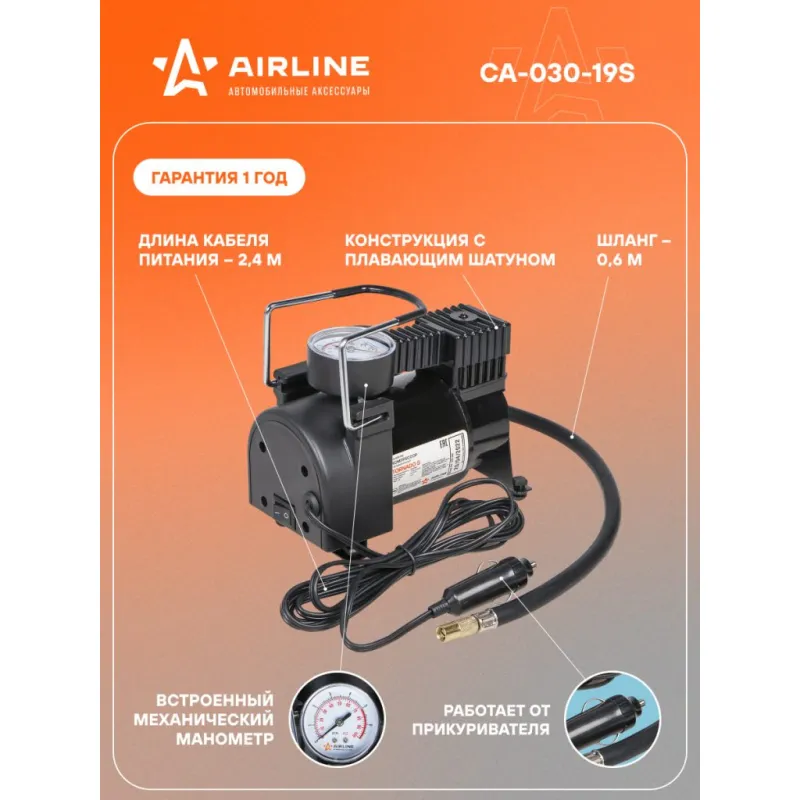 Компрессор TORNADO S (30/мин., 7АТМ) Описание: Электрический автомобильный компрессор имеет мощность 60 Вт, максимальную производительность 30 л/мин и механический манометр для контроля давления. Работает от прикуривателя. Морозостойкие провода до -40С. В наборе идет 3 насадки для работы с разными предметами. В данном компрессоре используется конструкция с плавающим шатуном, что увеличивает ресурс работы в 2-3 раза, по сравнению с более мощными "металлическими компрессорами". С его помощью вы можете быстро и просто накачать колеса, а переходники в комплекте подойдут для мячей и других надувных изделий. Автоматический электронасос подойдет для накачивания и подкачки шин в машинах любой марки и модели, легковых или грузовых, а также подходит для камер детской коляски, квадроцикла, мотоцикла, мопеда, скутера, самоката или электровелосипеда и другого транспорта. Сменив наконечник, вы также сможете надувать с помощью автоаксессуара спортивные снаряды любой формы, большие мячи, батуты, бассейны, резиновые лодки, ватрушки. Колеса R14 до 2 Атм компрессор накачивает за 4 мин! Электрический автомобильный компрессор — это незаменимый аксессуар для владельцев авто и мототехники, поэтому будет отличным приобретением в подарок автовладельцу, мужчине, мужу, брату, парню, другу и каждому автомобилисту в машину на День рождения и другой праздник. Характеристики: Артикул: CA-030-19S Тип: Электрический Максимальный ток, А: 5,5 Напряжение, В: 12 Производительность, л/мин: 30 Максимальное давление, Атм (кг/см2): 7 Время непрерывной работы, мин.: 15 Длина кабеля питания, м: 2,4 Длина шланга, м: 0,6 Время накачивания колеса R14 от 0 до 2 Атм, мин: 4 Мощность, Вт: 60 Манометр: Встроенный механический Комплектация: Компрессор TORNADO S - 1 шт Дополнительные насадки - 3 шт Коробка картонная - 1 шт Паспорт изделия - 1 шт Инструкция по эксплуатации - 1 шт Гарантия: от 1 года.