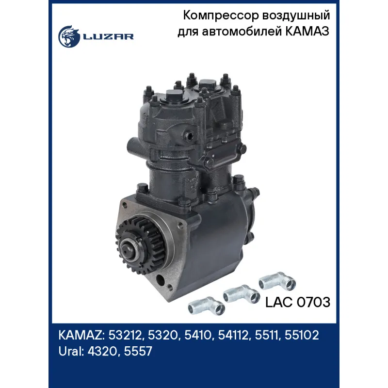 Компрессор воздушный для автомобилей КАМАЗ (2 цилиндра, >210 л/мин) Характеристики: Артикул: LAC 0703 OEM номера: 53203509015 Номинальный рабочий объем, см3: 215 Номинальная частота вращения коленчатого вала, об/мин: 3000 Потребляемая мощность, кВт: 4,5 Производительность не менее, л/мин: 210 (12,6 м3/ч) Выброс масла с нагнетаемым воздухом не более, г/час: 1 Количество на автомобиль: 1 Система смазки: под давлением от системы смазки двигателя Система охлаждения: жидкостная от системы охлаждения двигателя Подходит для авто: КамаАЗ 53212, 5320, 5320, 53212, 5410, 54112, 5511, 55102, 55102 Ural 4320, 5557 Для проверки применяемости отправьте VIN автомобиля через вкладку "Есть вопросы о товаре?" Комплектация: Компрессор воздушный - 1 шт Фитинг - 3 шт Гарантия: от 1 года.