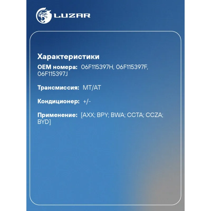 Корпус маслоохладителя для а/м VW Golf (04-)/Passat (05-) 2.0TFSi Характеристики: Артикул: LBP 1810 OEM номера: 06F115397H, 06F115397F, 06F115397J Количество на автомобиль: 1 Трансмиссия: MT/AT Кондиционер: +/- Применение: [AXX; BPY; BWA; CCTA; CCZA; BYD] Подходит для авто: Volkswagen Passat B6 (05-), Golf V (03-), Scirocco (08-) Skoda Octavia A5 (04-) Seat Leon (05-) Audi A4 B7 (04-) Для проверки применяемости отправьте VIN автомобиля через вкладку "Есть вопросы о товаре?" Комплектация: Корпус маслоохладителя Комплект прокладок уплотнительных - 3 шт Паспорт изделия Гарантия: от 1 года.