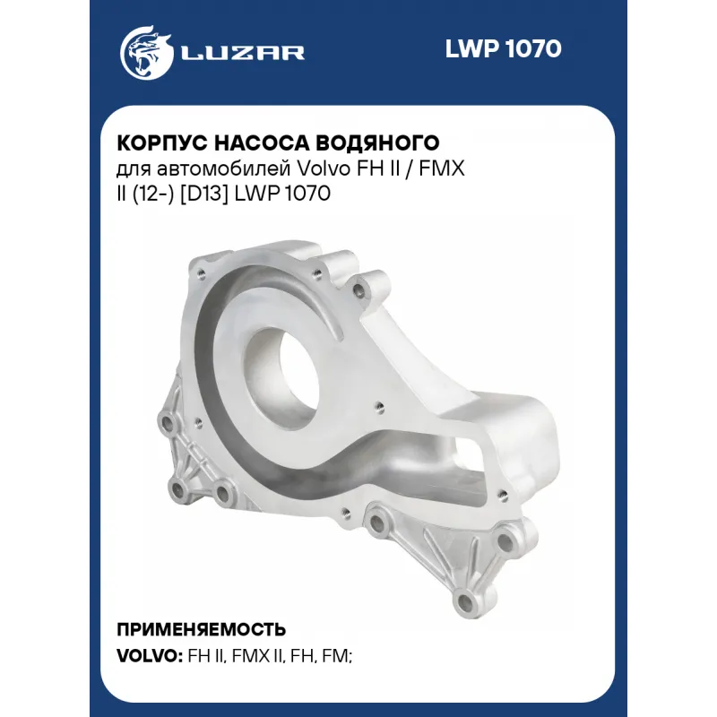 Корпус насоса водяного для автомобилей Volvo FH II / FMX II (12-) [D13] Характеристики: Артикул: LWP 1070 OEM номера: 22195464, 21284318, 85003269, 7422195464, 7420505543 Количество на автомобиль: 1 Комплектация: Корпус водяного насоса Гарантия: от 1 года.