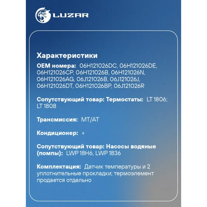 | Сопутствующий товар: Насосы водяные (помпы) | LWP 18H6, LWP 1836 |