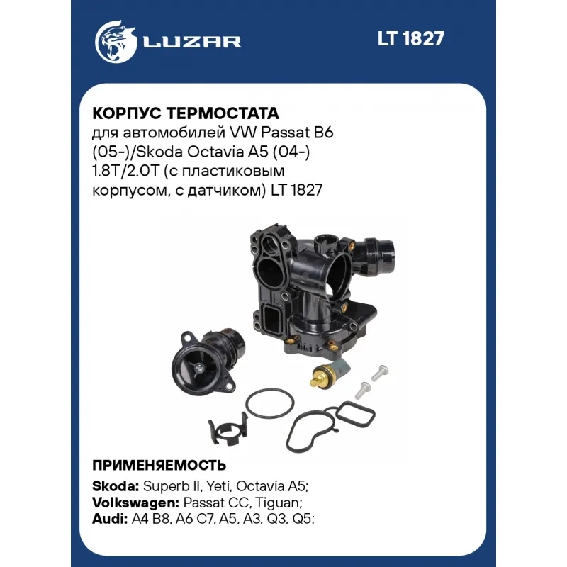 Корпус термостата для автомобилей VW Passat B6 (05-)/Skoda Octavia A5 (04-) 1.8T/2.0T (с пластиковым корпусом, с датчиком) Характеристики: Артикул: LT 1827 OEM номера: 06H121026BA, 06H121026DD, 06H121026B, 06H121026DC, 06H121026DE, 06H121026CP, 06H121026N, 06H121026AG, 06H121026BE, 06H121026AB, 06H121026CC, 06H121026DN, 06H121026BF, 06H121026CF, 06H121026CQ, 06H121026DR, 06H121026DS, 06H121008F, 06H121026BP, 06J121026R, 06H121026AF, 06J121026G, 06J121026L, 06J121026M, 06J121026B, 06J121026J, 06H121026DT Сопутствующий товар: Термостаты: LT 1806; LT 1808 Сопутствующий товар: Датчики температуры: LS 1823 Количество на автомобиль: 1 Трансмиссия: MT/AT Кондиционер: + Сопутствующий товар: Насосы водяные (помпы): LWP 18H6, LWP 1836 Материал: пластик Комплектация: датчик температуры и 2 уплотнительные прокладки; термоэлемент продается отдельно Датчик ОЖ: LS 1823 Подходит для авто: Skoda Superb II (08-), Yeti (09-), Octavia A5 (04-) Volkswagen Passat CC (08-), Tiguan (08-), Golf VI (08-), Amarok (09-), Golf V (03-), Scirocco (08-), Jetta (05-), Passat B6 (05-), Passat B7 (10-) Audi A4 B8 (07-), A6 C7 (11-), A5 (07-), A3 (03-), Q3 (11-), Q5 (08-) Для проверки применяемости отправьте VIN автомобиля через вкладку "Есть вопросы о товаре?" Комплектация: Корпус термостата - 1 шт Паспорт изделия - 1 шт Уплотнительная прокладка - 2 шт Датчик температуры - 1 шт Болт - 2 шт Фланец - 1 шт Фиксатор - 1 шт Гарантия: от 1 года.