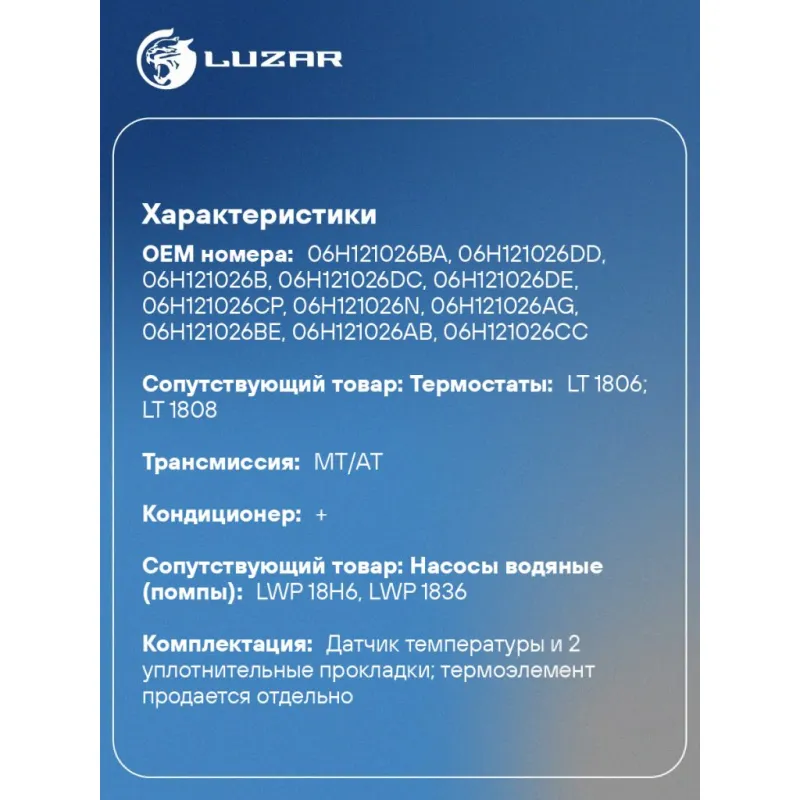 | Сопутствующий товар: Насосы водяные (помпы) | LWP 18H6, LWP 1836 |