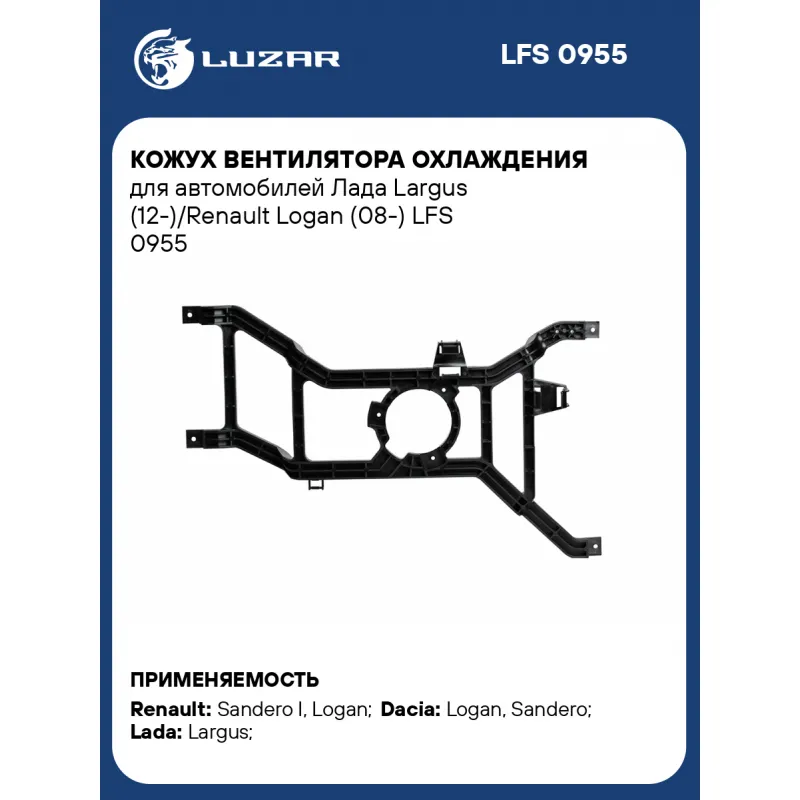 Кожух вентилятора охлаждения для автомобилей Лада Largus (12-)/Renault Logan (08-) Характеристики: Артикул: LFS 0955 OEM номера: 8200779073, 8200702955, 214817807R, 214810826R, 214811782R, 214817732R, 92120-00Q2F Сопутствующий товар: Электровентиляторы охлаждения: LFc 0951 Количество на автомобиль: 1 Материал: пластик Кондиционер: - Подходит для авто: Renault Sandero I (09-), Logan (08-) Dacia Logan (08-), Sandero (09-) ВАЗ Largus (12-) Для проверки применяемости отправьте VIN автомобиля через вкладку "Есть вопросы о товаре?" Комплектация: Кожух электровентилятора охлаждения - 1 шт Паспорт изделия - 1 шт Гарантия: от 1 года.
