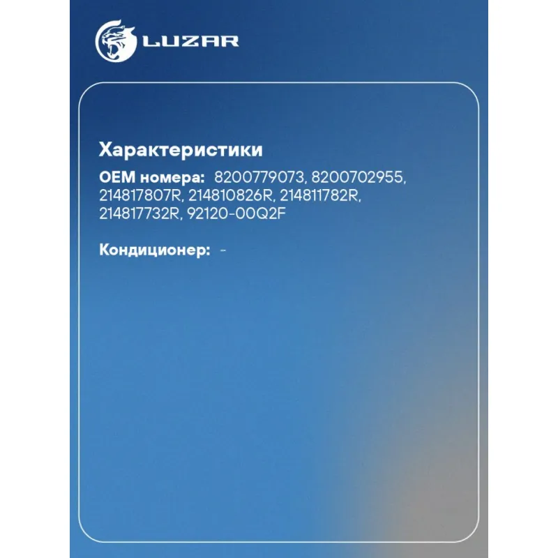 | Сопутствующий товар: Электровентиляторы охлаждения | LFc 0951 |