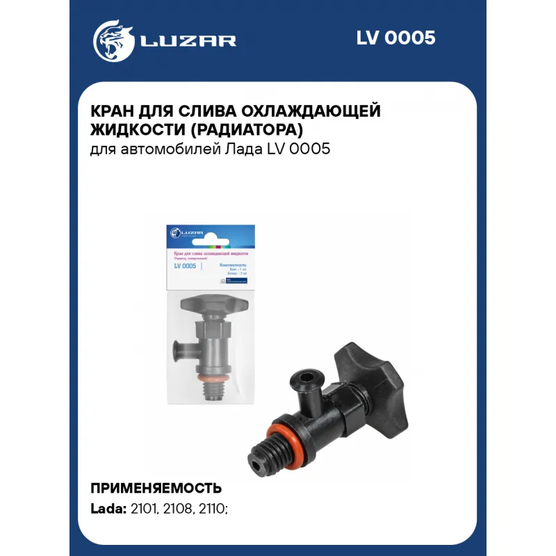 Кран для слива охлаждающей жидкости (радиатора) для автомобилей Лада Характеристики: Артикул: LV 0005 OEM номера: 2101-1305026-01 Количество на автомобиль: 1 Трансмиссия: MT Материал: пластик Резьба: М10x1,5 Подходит для авто: ВАЗ 2101, 2101, 2101, 2108, 2108, 2110, 2110, 2110, 2108, 2108, 2110 Для проверки применяемости отправьте VIN автомобиля через вкладку "Есть вопросы о товаре?" Комплектация: Кран резьбовой пластиковый - 1 шт Кольцо уплотнительное 8х3 - 1 шт Кольцо уплотнительное 005-007-14 - 1 шт Гарантия: от 1 года.