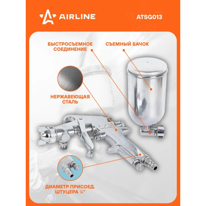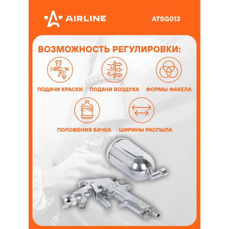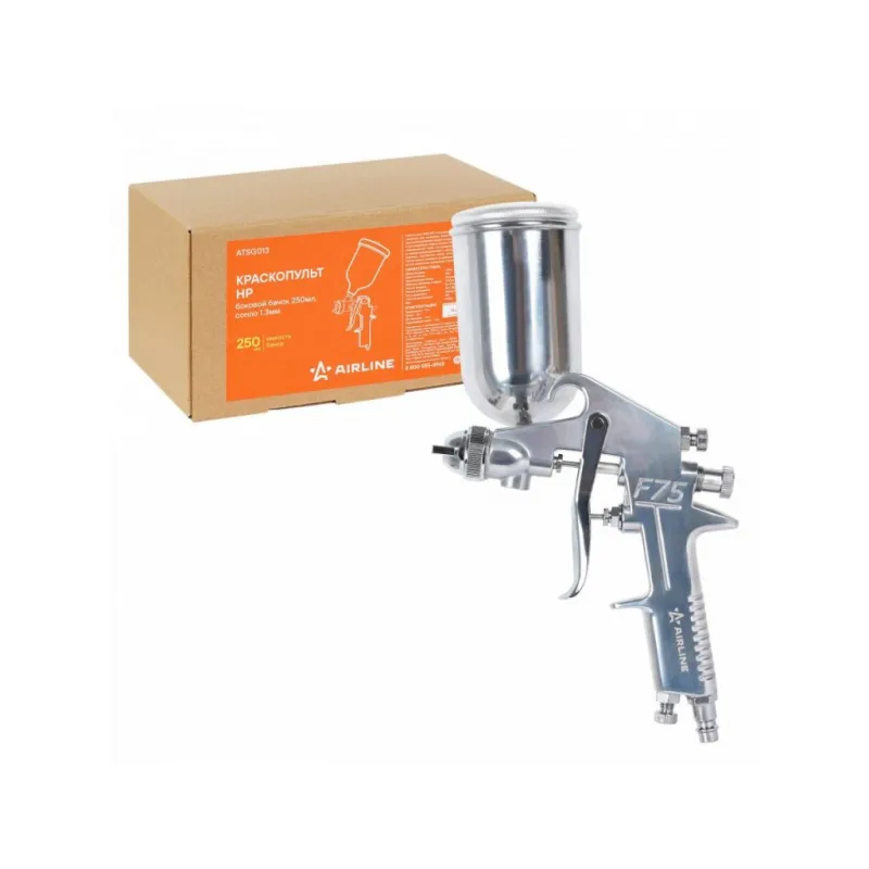 Краскопульт HP, боковой бачок 250мл, сопло 1.3мм Описание: Краскопульт бренда AIRLINE имеет сопло / дюзу диаметром 1.3 мм, что позволяет ему эффективно распылять лакокрасочные материалы на различные поверхности. Уникальная технология HP обеспечивает аккуратный перенос лакокрасочного материала, что значительно снижает его расход и минимизирует выброс частиц краски в атмосферу. Бачок краскопульта рассчитан на и имеет эргономичную форму, что обеспечивает комфортную работу с инструментом в течение длительного времени. Пистолет краскораспылителя оснащен тремя регулировками, позволяющими точно настроить объем подаваемого воздуха в канал, форму факела и количество подаваемого материала. Этот ручной пневматический краскопульт предназначен для нанесения красок, лаков, грунтовок и других покрытий. Он идеально подходит для строительных и ремонтных работ, а также для покраски автомобилей и других объектов. Набор станет отличным дополнением к вашему домашнему инструментарию, значительно упрощая процесс обработки поверхностей. Он также будет полезен при ремонте автомобиля. Характеристики: Артикул: ATSG013 Вес, кг: 0.56 Тип соединения: Рапид евро Диаметр сопла: 1.3 Диаметр присоединительного штуцера: 1/4 Рабочее давление воздуха, АТМ: 3.4 Расход воздуха, л/мин: 169 Система распыления: HP Расход материала: 210 Емкость бачка: 250 расположение бачка: Сбоку Комплектация: Краскопульт - 1 шт Бачок - 1 шт Инструкция - 1 шт Гарантийный талон - 1 шт Коробка - 1 шт Гарантия: от 1 года.