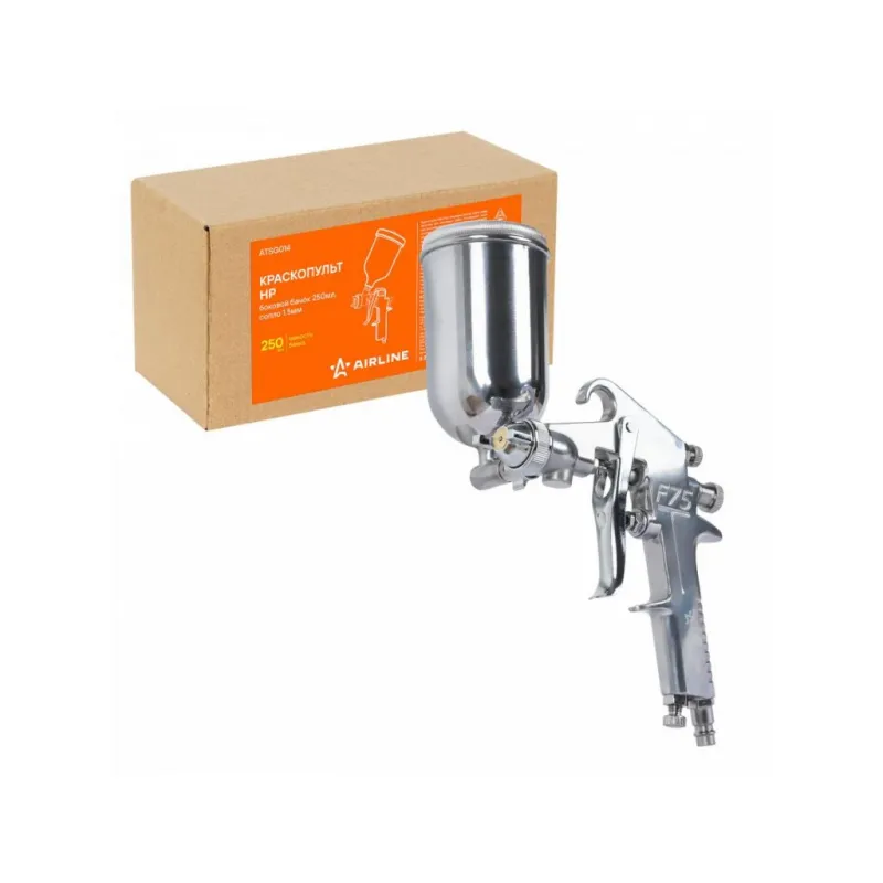 Краскопульт HP, боковой бачок 250мл, сопло 1.5мм Описание: Краскопульт бренда AIRLINE имеет сопло / дюзу диаметром 1.5 мм, что позволяет ему эффективно распылять лакокрасочные материалы на различные поверхности. Уникальная технология HP обеспечивает аккуратный перенос лакокрасочного материала, что значительно снижает его расход и минимизирует выброс частиц краски в атмосферу. Бачок краскопульта рассчитан на 250 мл и имеет эргономичную форму, что обеспечивает комфортную работу с инструментом в течение длительного времени. Пистолет краскораспылителя оснащен тремя регулировками, позволяющими точно настроить объем подаваемого воздуха в канал, форму факела и количество подаваемого материала. Этот ручной пневматический краскопульт предназначен для нанесения красок, лаков, грунтовок и других покрытий. Он идеально подходит для строительных и ремонтных работ, а также для покраски автомобилей и других объектов. Набор станет отличным дополнением к вашему домашнему инструментарию, значительно упрощая процесс обработки поверхностей. Он также будет полезен при ремонте автомобиля. Характеристики: Артикул: ATSG014 Вес, кг: 0.56 Тип соединения: Рапид евро Диаметр сопла: 1.5 Рабочее давление воздуха, АТМ: 3.4 Расход воздуха, л/мин: 169 Ёмкость бачка, мл: 250 Система распыления: HP Расход материала: 210 расположение бачка: Сбоку Комплектация: Краскопульт - 1 шт Бачок - 1 шт Инструкция - 1 шт Гарантийный талон - 1 шт Коробка - 1 шт Гарантия: от 1 года.
